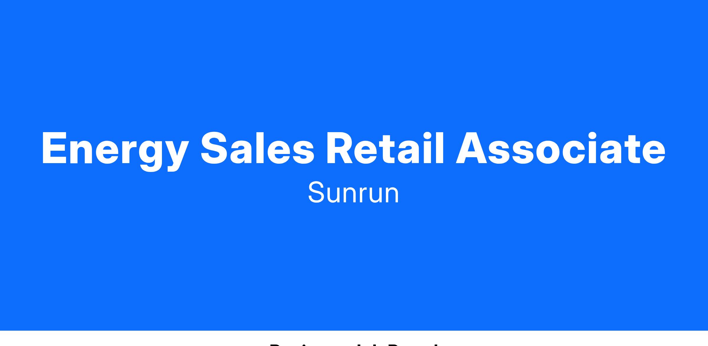 Power your potential and #electrifyyourcareer by joining the leading U.S. solar, storage, and energy services company. Are you looking to position yourself in a high growth, high impact career? Do you desire a sales lifestyle? If so, look no further - the Sunrun retail team is hiring!