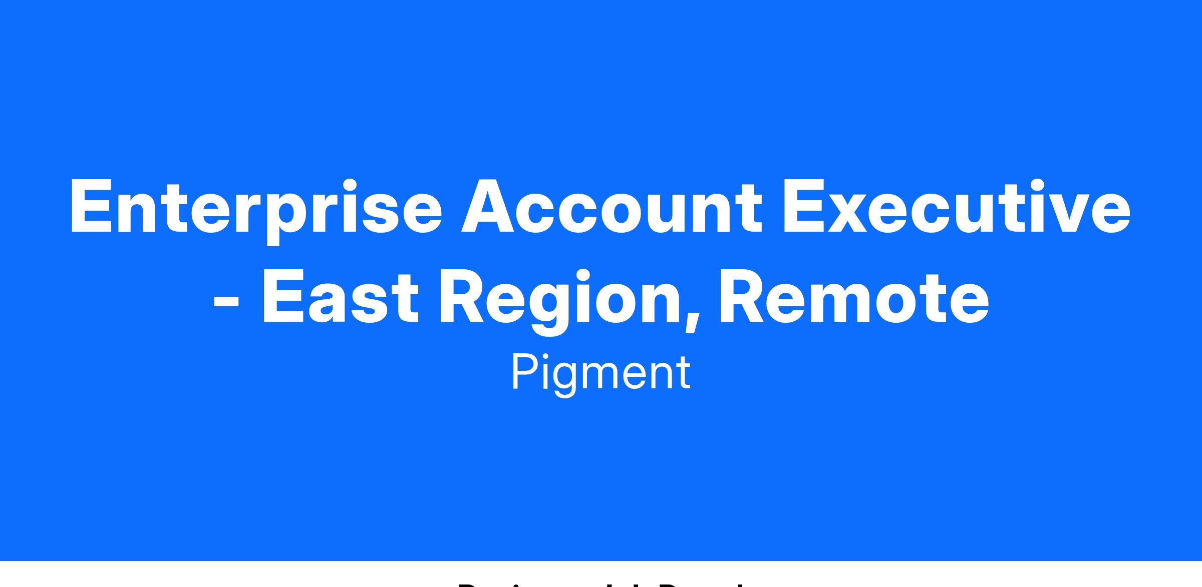 As an Enterprise Account Executive, you’ll be on the front lines of how Pigment grows our business by leading the full sales cycle from initial interest to deal close and coordinate collaboration with customer success, technical teams, etc. You’ll also be responsible for building c-suite & executive level relationships with our clients across an array of industries.