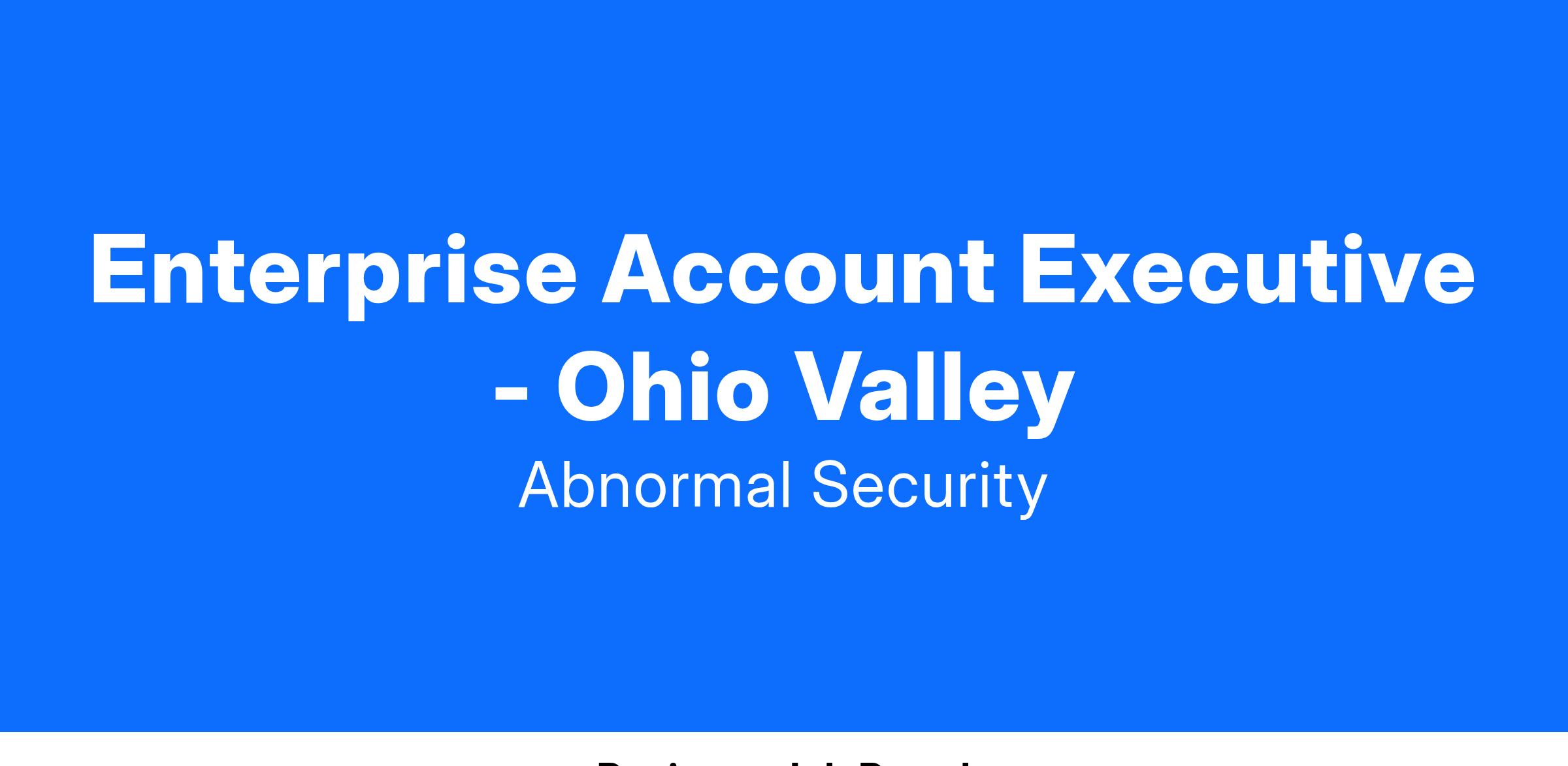 Abnormal Security is looking for an Enterprise Account Executive.This team sells our security solutions to Enterprise level accounts within a defined territory. The ideal candidate for the role will be located in the Los Angeles area and have the following skillset: