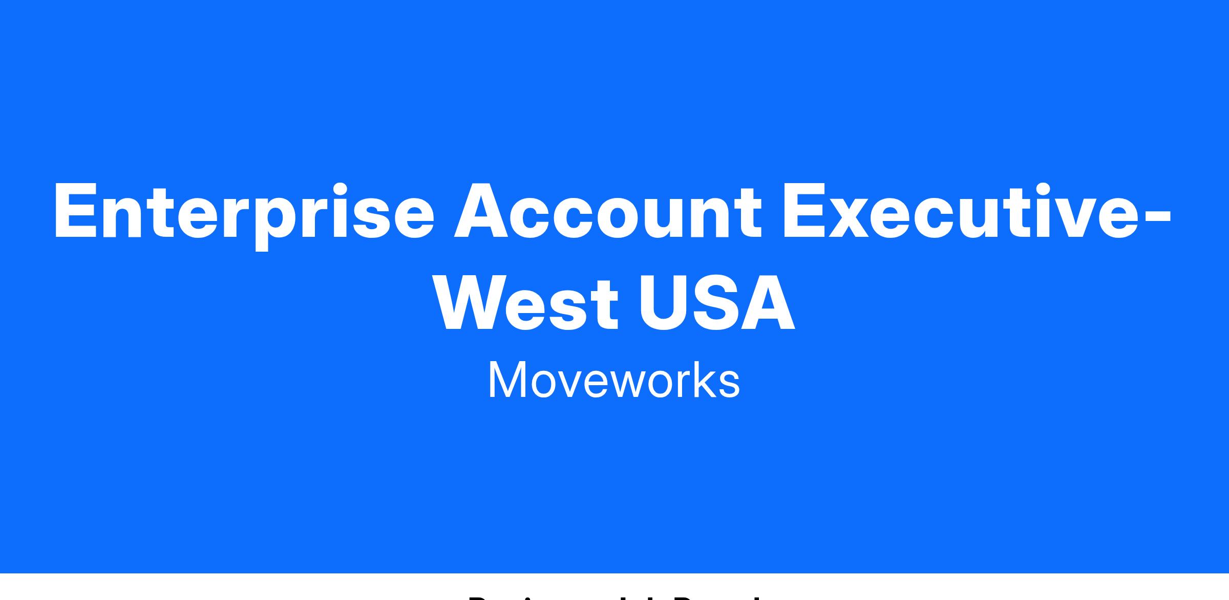 We are searching for an experienced Enterprise Account Executive that has a real passion for technology and can deliver on bold revenue targets. As we continue to expand our large enterprise customer footprint, this role within Moveworks will help blaze the path for organizational growth. This is a lucrative opportunity to own a defined set of accounts with a primarily greenfield territory and be the quarterback within your region and take ownership in your personal success and outcomes. You will primarily focus on large enterprise accounts (5,000+ employees) and own all facets of revenue goals and targets within your respective territory.
