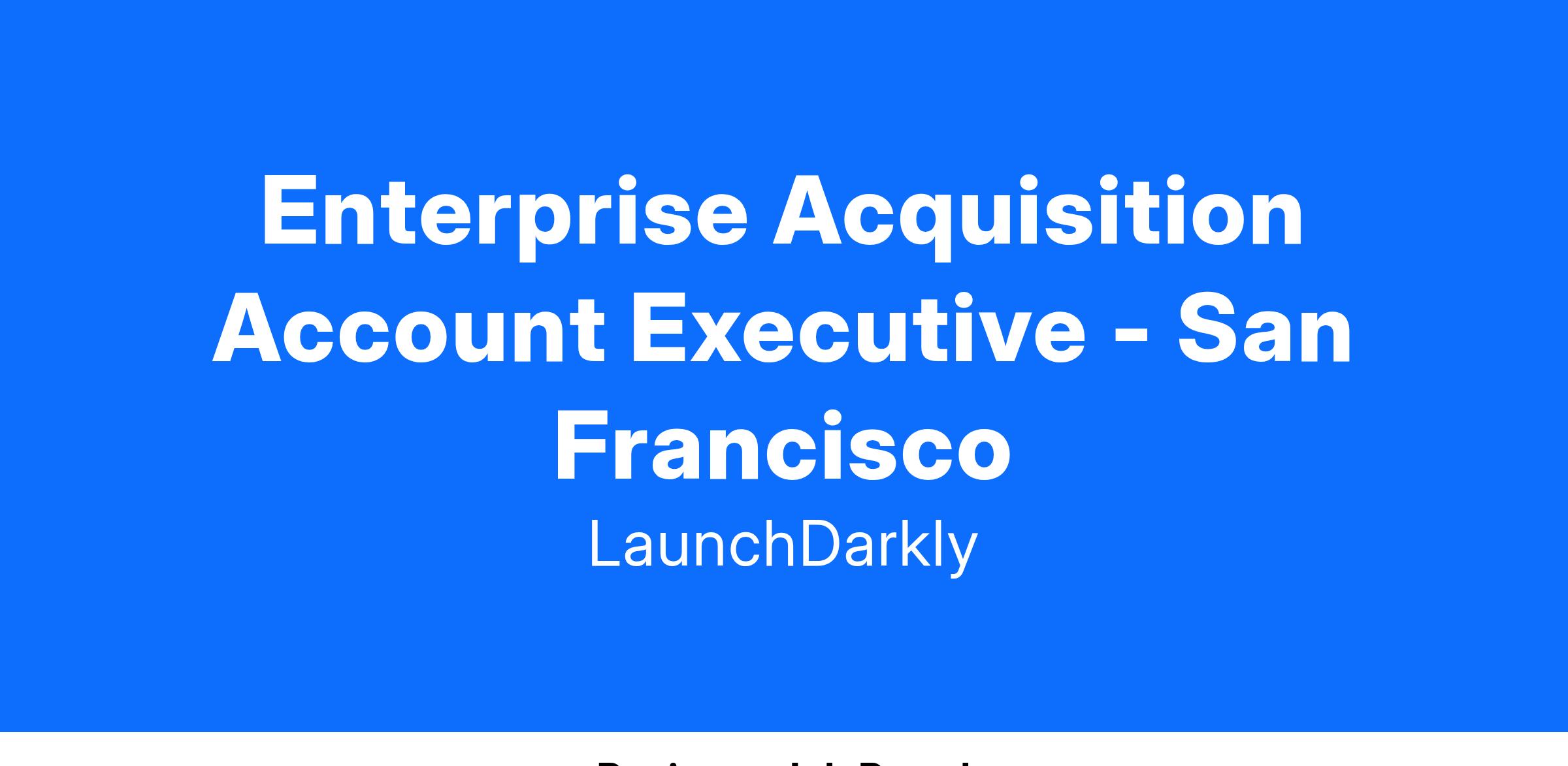 The Enterprise Acquisition Account Executive will drive LaunchDarkly’s growth by acquiring new enterprise customers. Acting as the "quarterback" for a defined territory, you will develop and execute strategic plans, generate new opportunities, and deliver tailored solutions to demonstrate LaunchDarkly's value.
