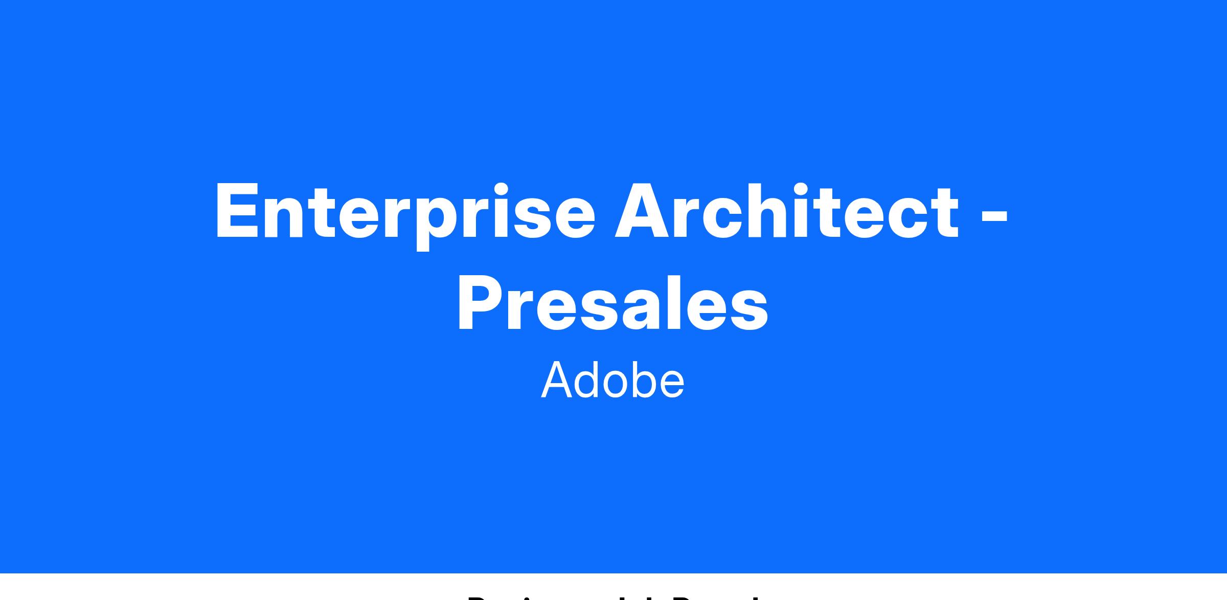 - Collaborate with other Technical Pre Sales and Sales teams to align on Adobe solutions supporting customer needs.