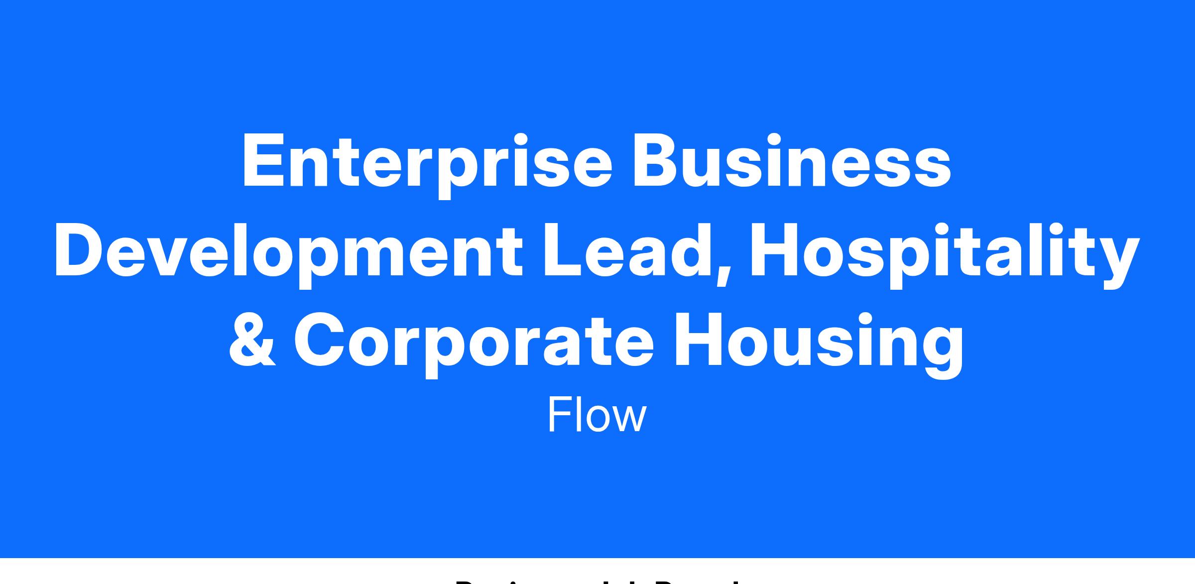 As an Enterprise Business Development Lead, Hospitality & Corporate Housing, you will drive revenue growth by leveraging existing relationships and building new strategic partnerships within the hotel and hospitality industry. You will play a pivotal role in leading Flow’s enterprise sales efforts, targeting key players in the industry to deliver customized solutions that address their business needs. You will also have a strong portfolio of existing relationships with key decision-makers at enterprise-level hospitality companies.