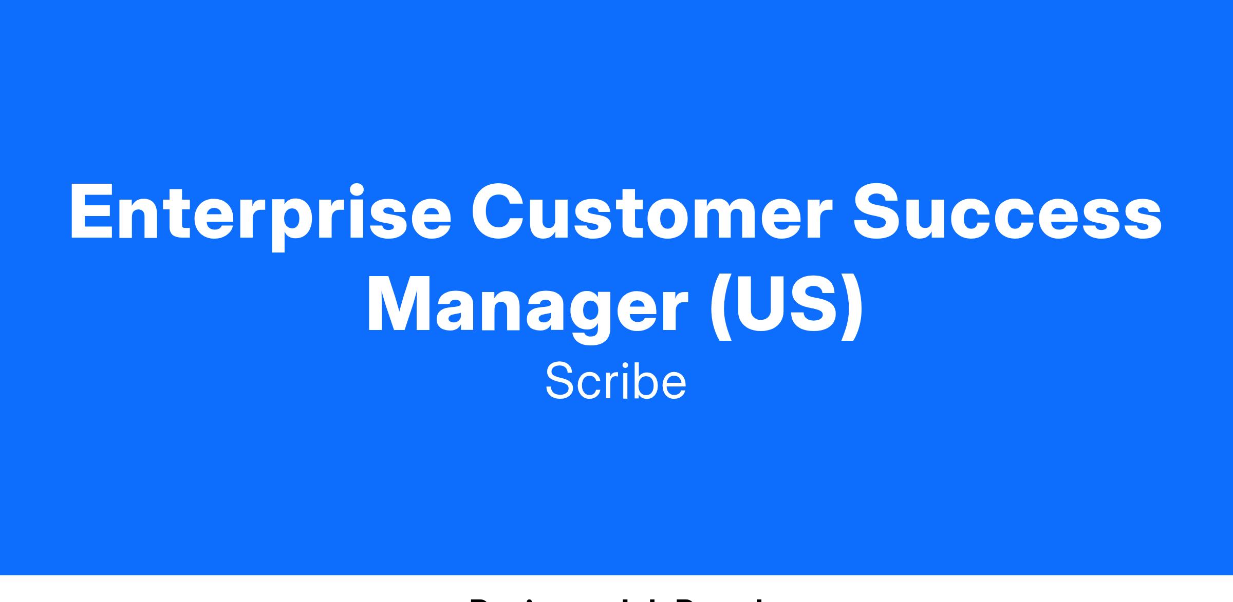 Scribe is seeking a Customer Success Manager to join our growing Go To Market team, supporting customers in our Enterprise and Strategic segments. In this role, you’ll be responsible for onboarding new Enterprise customers and driving adoption throughout the customer lifecycle, culminating in seamless renewal events. You’ll also be responsible for driving expansion opportunities within existing customers by partnering with key customer stakeholders and decision-makers, identifying new use cases and teams, and successfully proposing Scribe solutions. You’ll report to the Head of Customer Success and can be based anywhere in the US or Canada.
