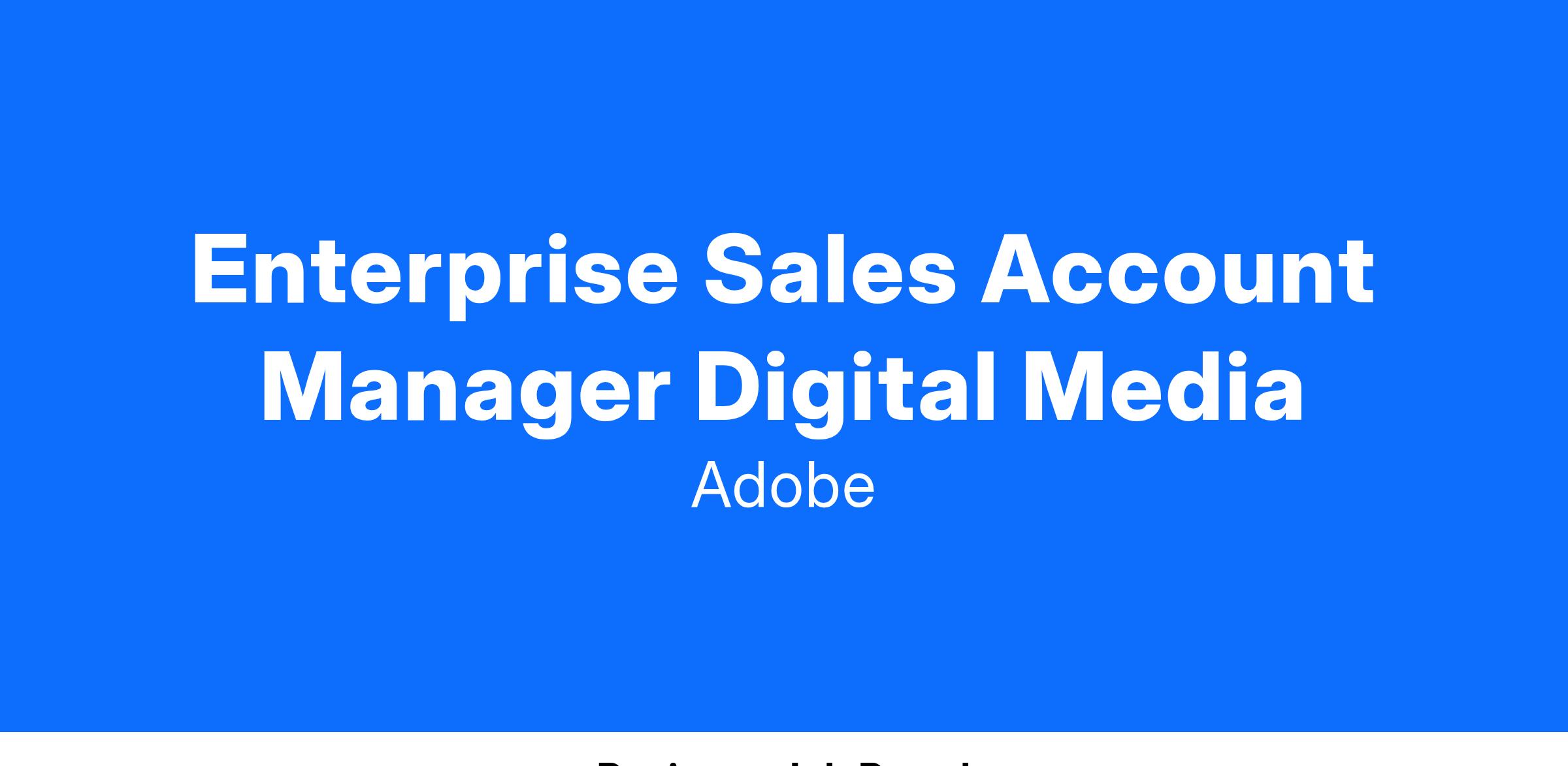 Adobe’s Digital Media Enterprise team is looking for a hardworking, proactive Account Manager to ensure that the needs of our Enterprise clients are being supported. The Account Manager is responsible for the sourcing and closing of new customers, and for the end-to-end management of Adobe's existing client relationships. Measures of success include revenue delivered vs. targets, up-sell and optimization effectiveness, client satisfaction and retention levels, and contribution to overall sales team and business unit. We are looking for a hunter in the West region who can demonstrate a history of quota over-achievement and deep customer relationships.