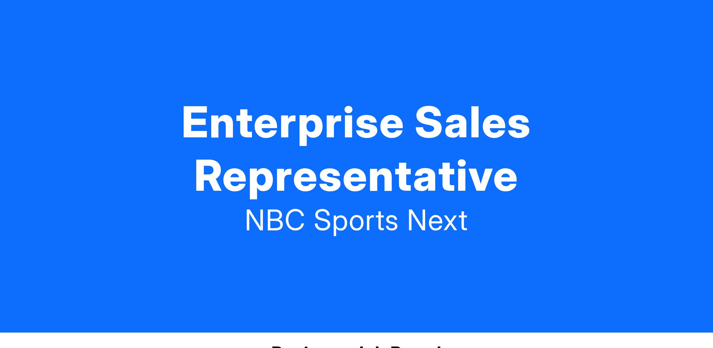 NBC Sports Next is hiring an Enterprise Sales Representative who will be a key driver and resource in developing, managing, and executing its enterprise sales and sports vertical strategy for the core sports of Baseball, Softball and Soccer. This professional will work cross-functionally with the account management, product development, safety, and marketing teams to manage, upsell, secure renewals, and create a high-level customer experience across their portfolio of enterprise accounts. This person will have an eye on revenue and driving best-in-class sales practices across their owned accounts to create value for our sport vertical partners.