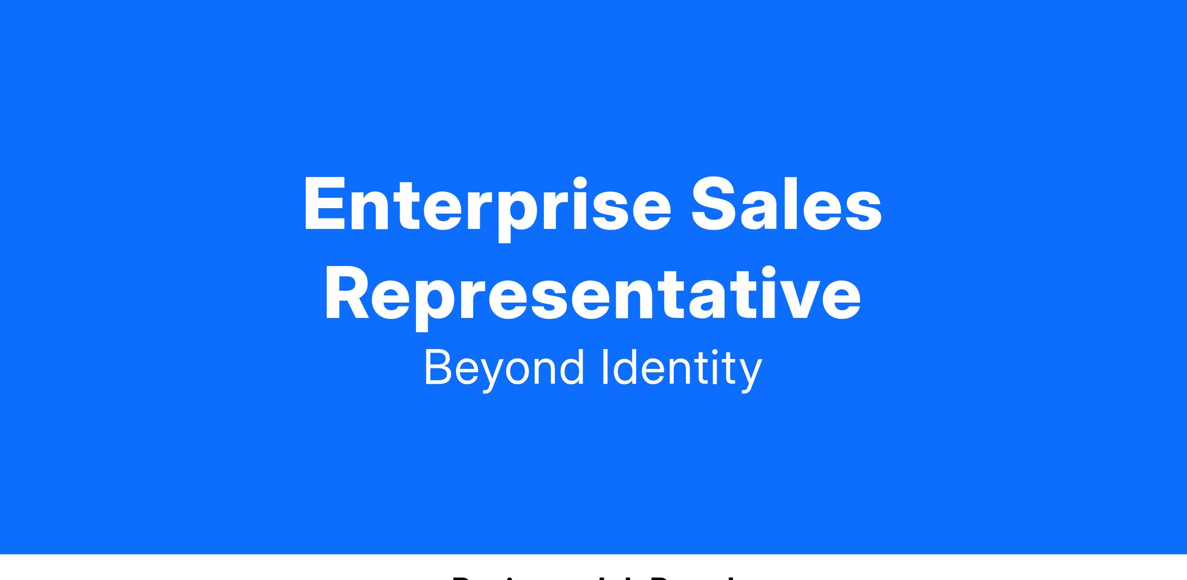 The Enterprise Sales Representative will make a significant contribution to the growth and success of Beyond Identity in their assigned region by aggressively developing new business through a combination of leveraging existing relationships/network as well as prospecting for new customers.