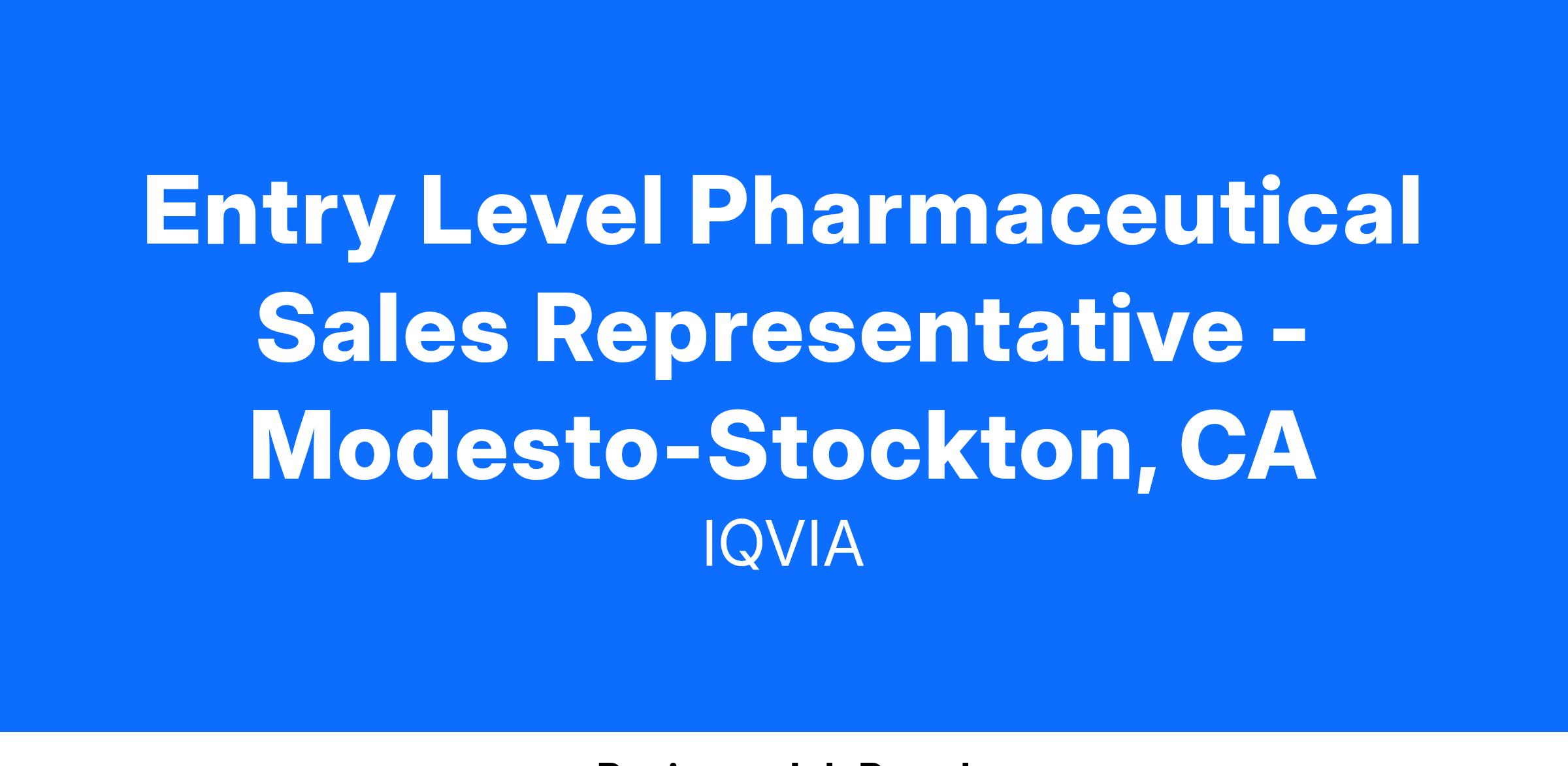 Entry Level Pharmaceutical Sales Representative - Modesto-Stockton, CA