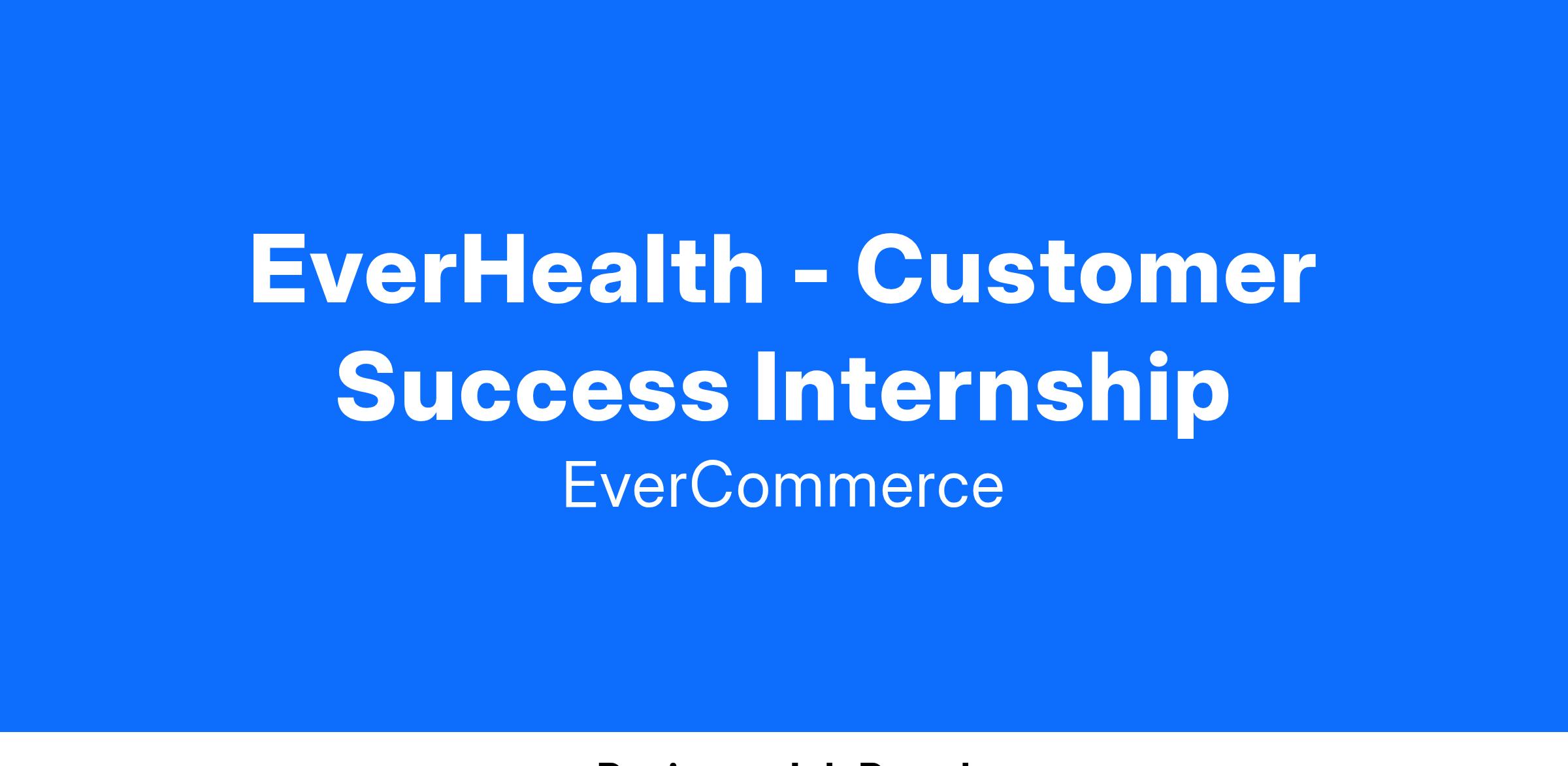 We are looking for a Summer Intern to serve on the EverHealth Customer Success team. Our mission is to build a technology platform that enables medical practices of all sizes to make care more informed, more personalized, more interactive, and more adaptable. EverHealth used by thousands of physicians who in turn have provided care to millions of patients. Our products can be completely tailored to any medical practice—small, large, or specialty. Our people and the enthusiasm for healthcare is contagious. As a Summer Intern you love giving best in class service to internal and external customers and are willing to help with the nitty gritty operational details. This role will report to the Head of Customer Success at EverHealth, but will work regularly with Managers across many of the solutions.