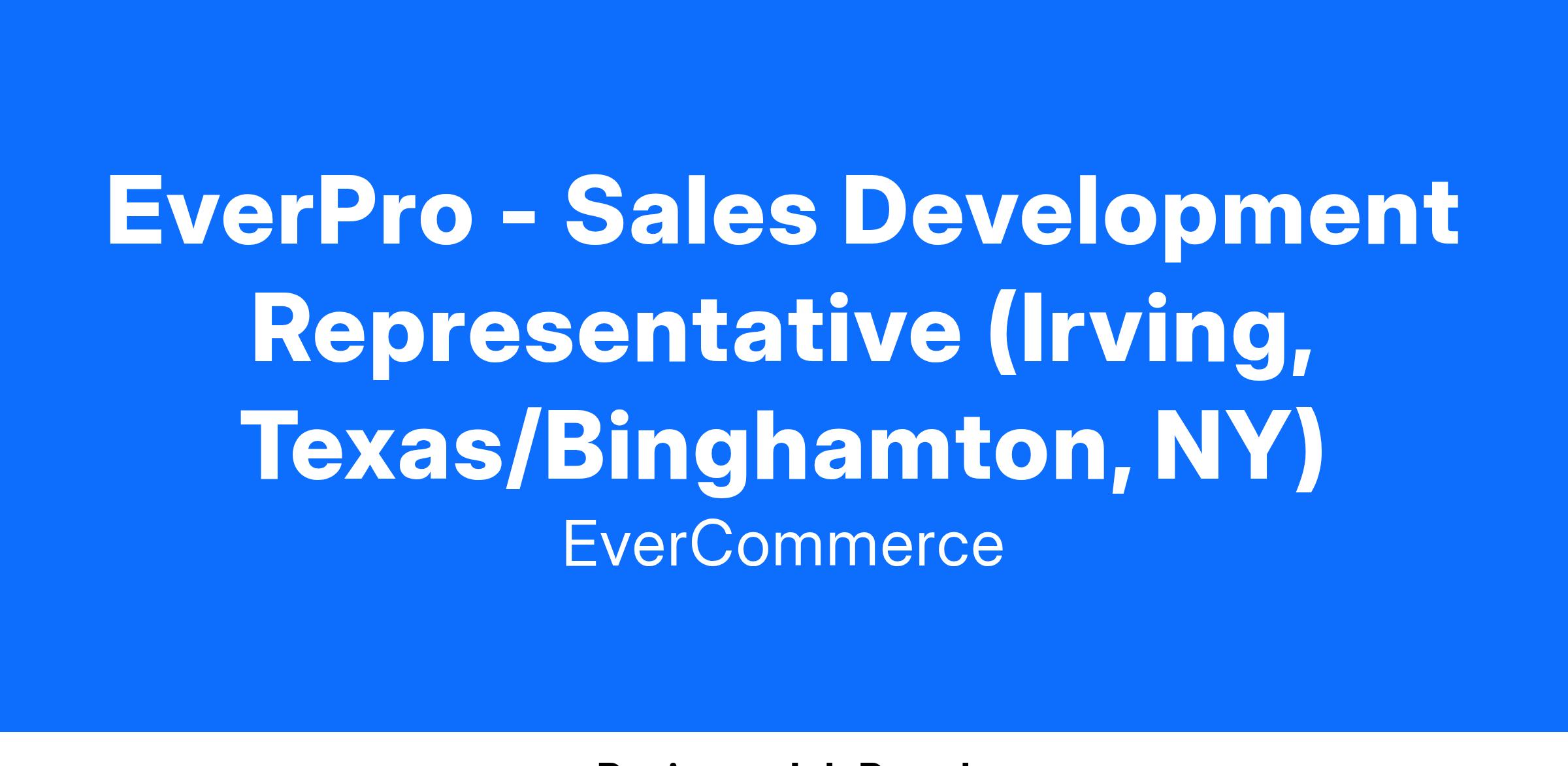EverPro's Service Fusion has brilliant and passionate people with the energy and ambition to succeed! If you are ready to make an immediate impact and you want to work with the best, then Service Fusion may be the place for you. We are seeking Sales Development Representatives to work in our Irving, TX or Binghamton, NY office.