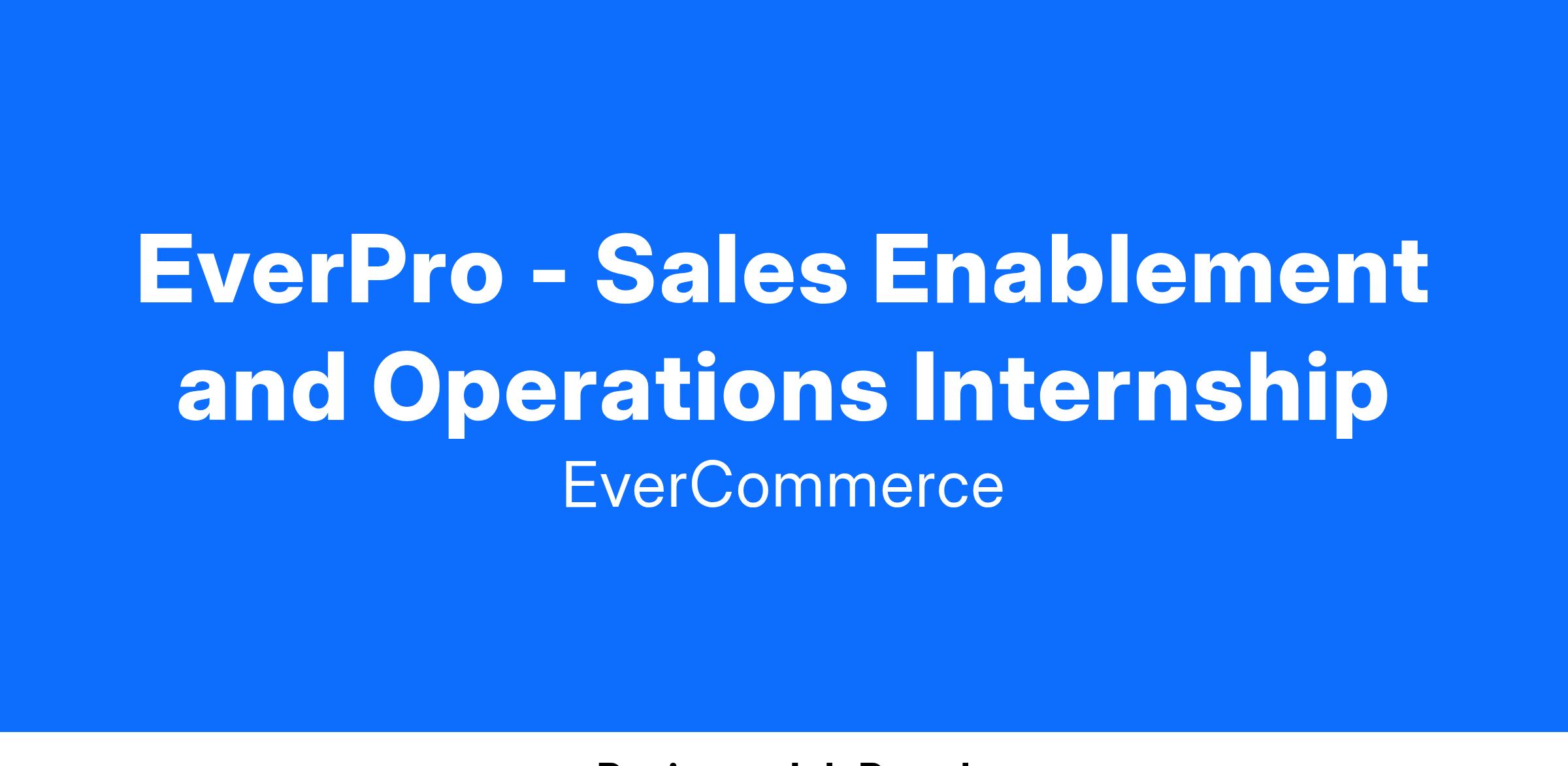 We are looking for an intern to work with our Sales Enablement and Operations departments for EverPro. EverPro solutions streamline day-to-day business operations, improve marketing effectiveness, and modernize engagement with customers for home and field service professionals.
