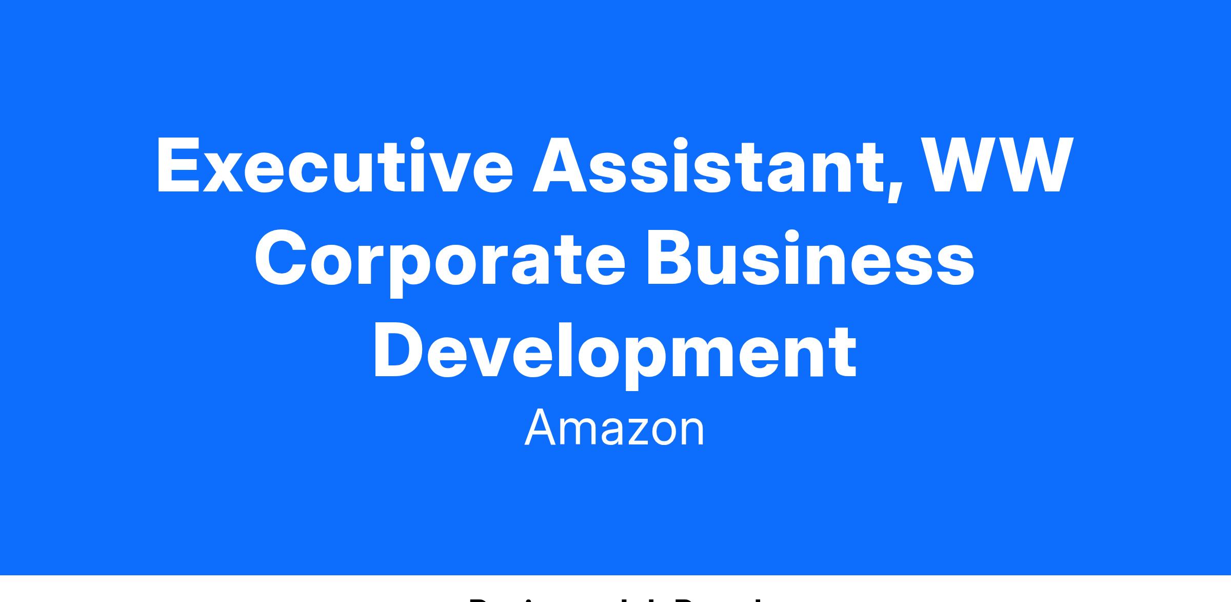 Amazon Business and Corporate Development has an exciting opportunity for an Executive Assistant looking to jump into the fast-paced world of Biz Dev.