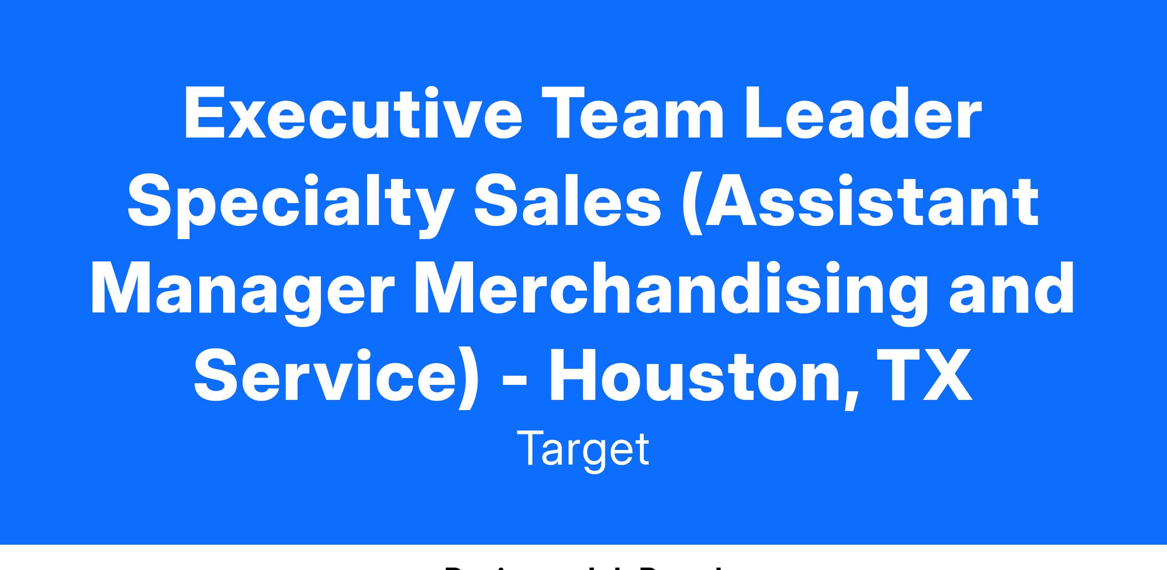 Executive Team Leader Specialty Sales (Assistant Manager Merchandising and Service) - Houston, TX