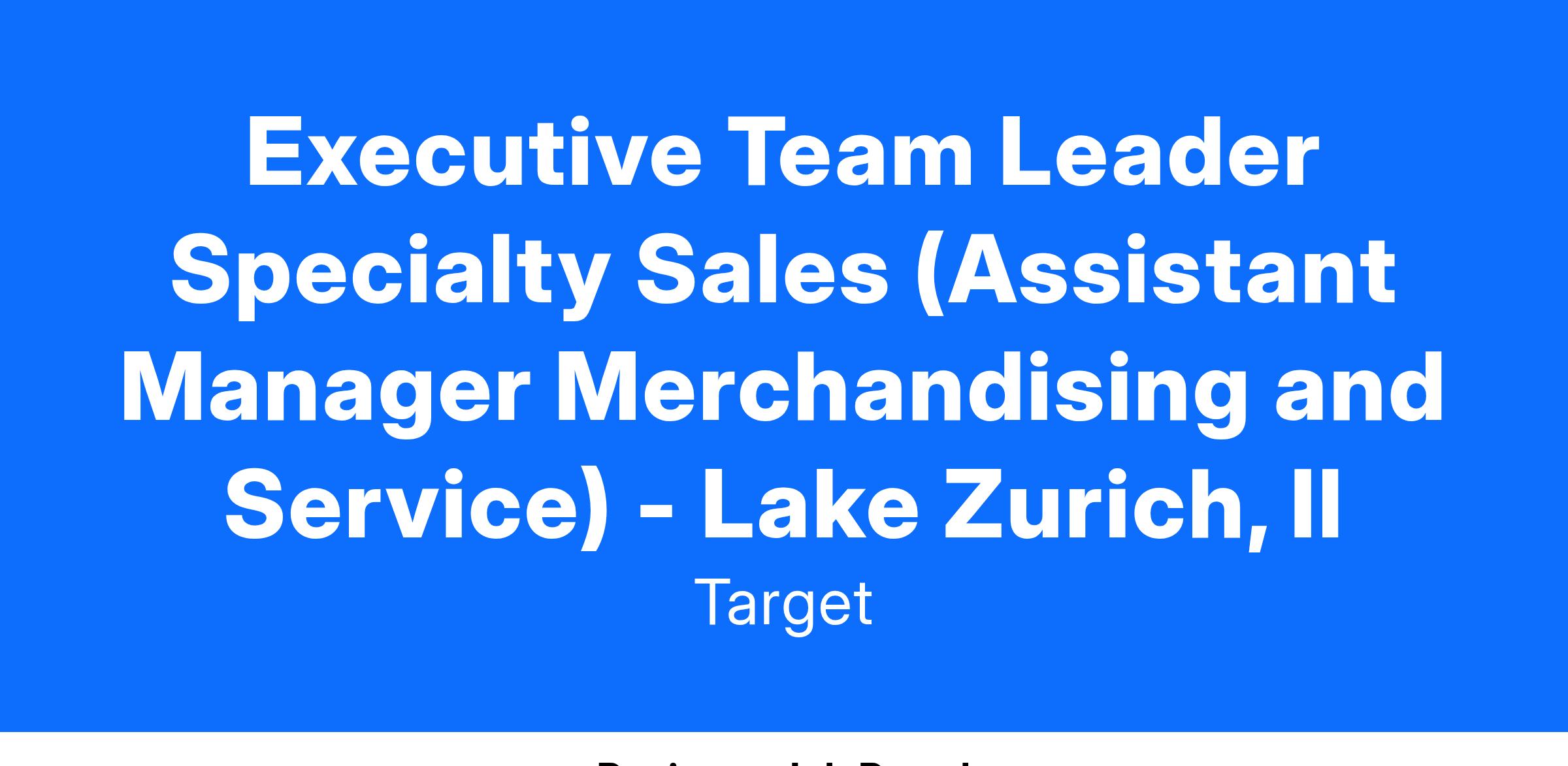Executive Team Leader Specialty Sales (Assistant Manager Merchandising and Service) - Lake Zurich, Il