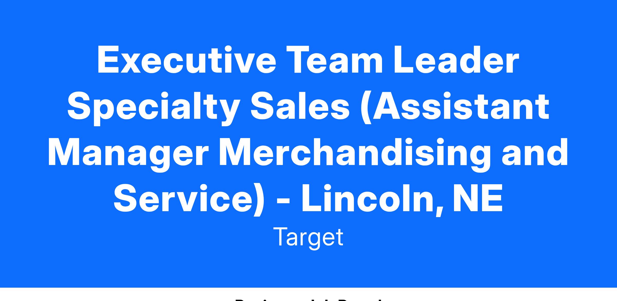 Executive Team Leader Specialty Sales (Assistant Manager Merchandising and Service) - Lincoln, NE