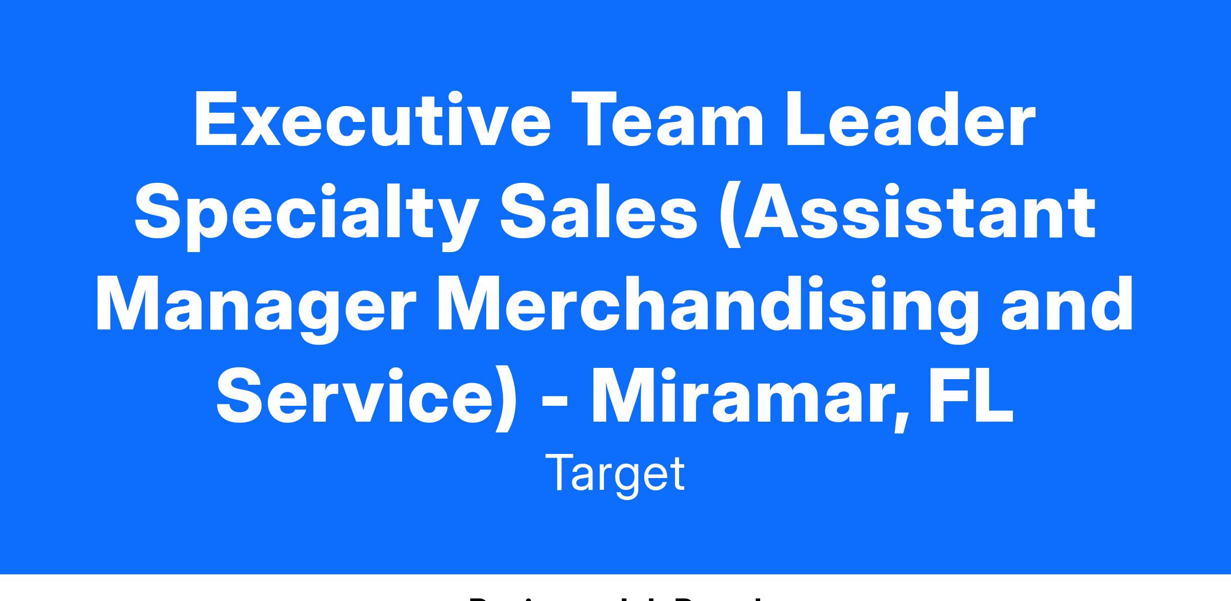 Executive Team Leader Specialty Sales (Assistant Manager Merchandising and Service) - Miramar, FL