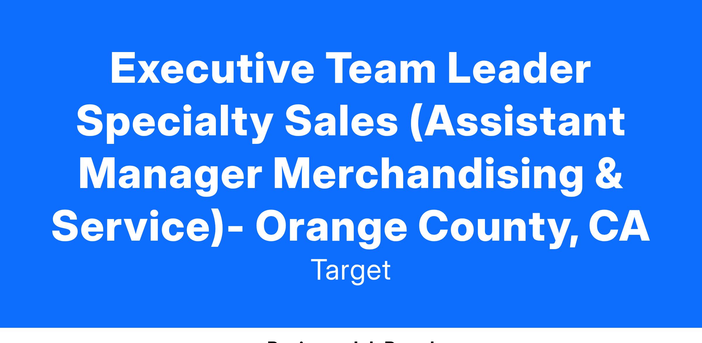 Executive Team Leader Specialty Sales (Assistant Manager Merchandising & Service)- Orange County, CA