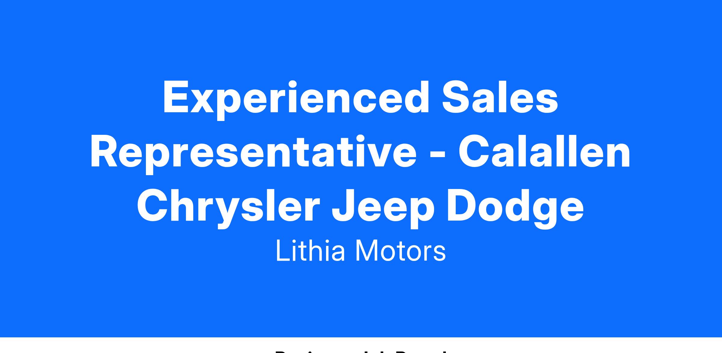 Come be a part of the Automotive Industry future with the Lithia Motors family, a Fortune 500 company with over 300 dealerships nationwide! Being one of the largest dealership groups in America, there are many opportunities for you to pursue your short and long-term career goals