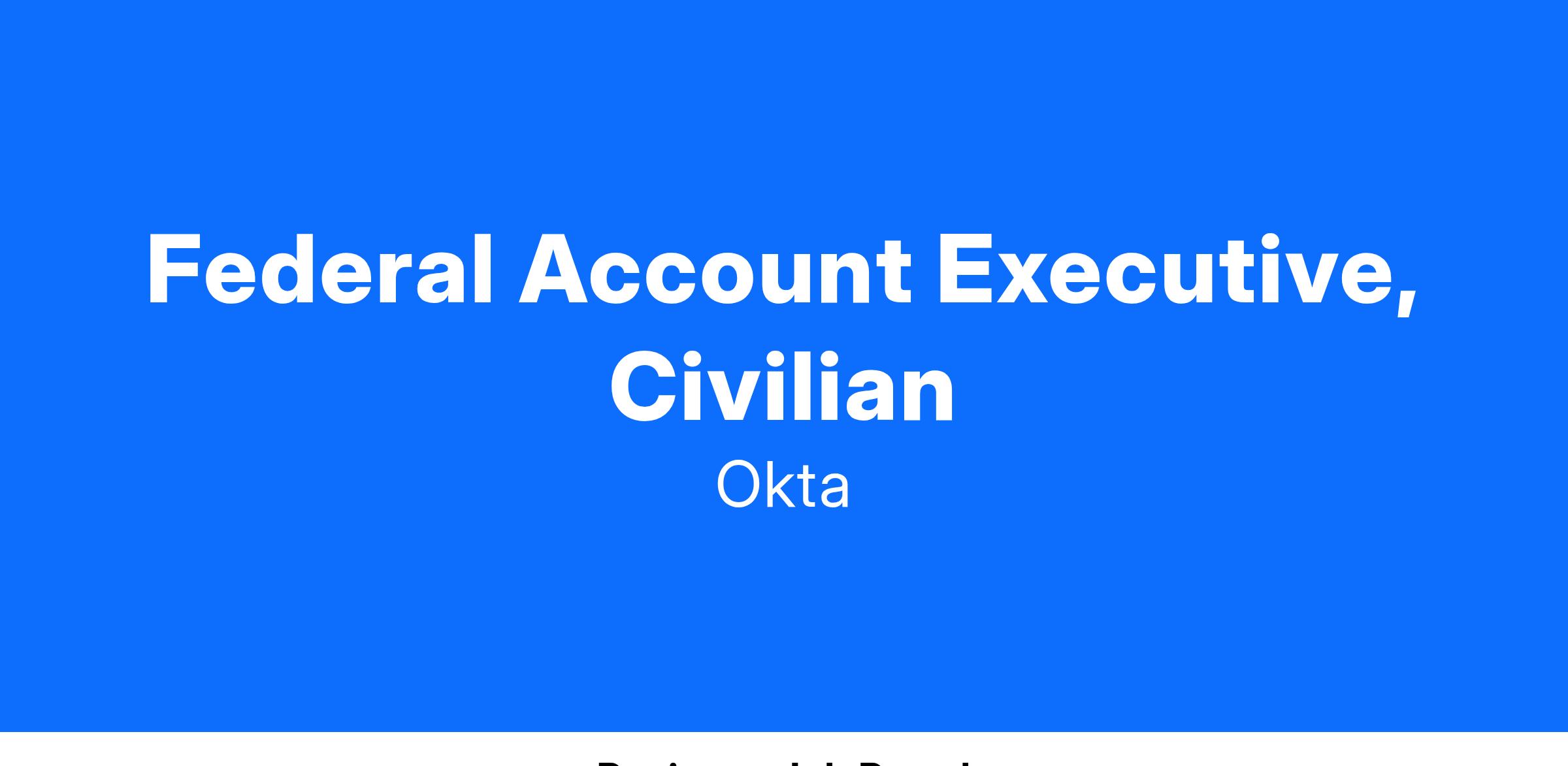 We are seeking a passionate, results oriented, sales professional to drive revenue growth calling on Federal accounts.  Our Federal Account Executive's are individual contributors who play a vital role in driving a significant share of revenue for Okta. We provide our reps with an environment in which they can make valuable contributions from day one while also building opportunities for learning and growth.