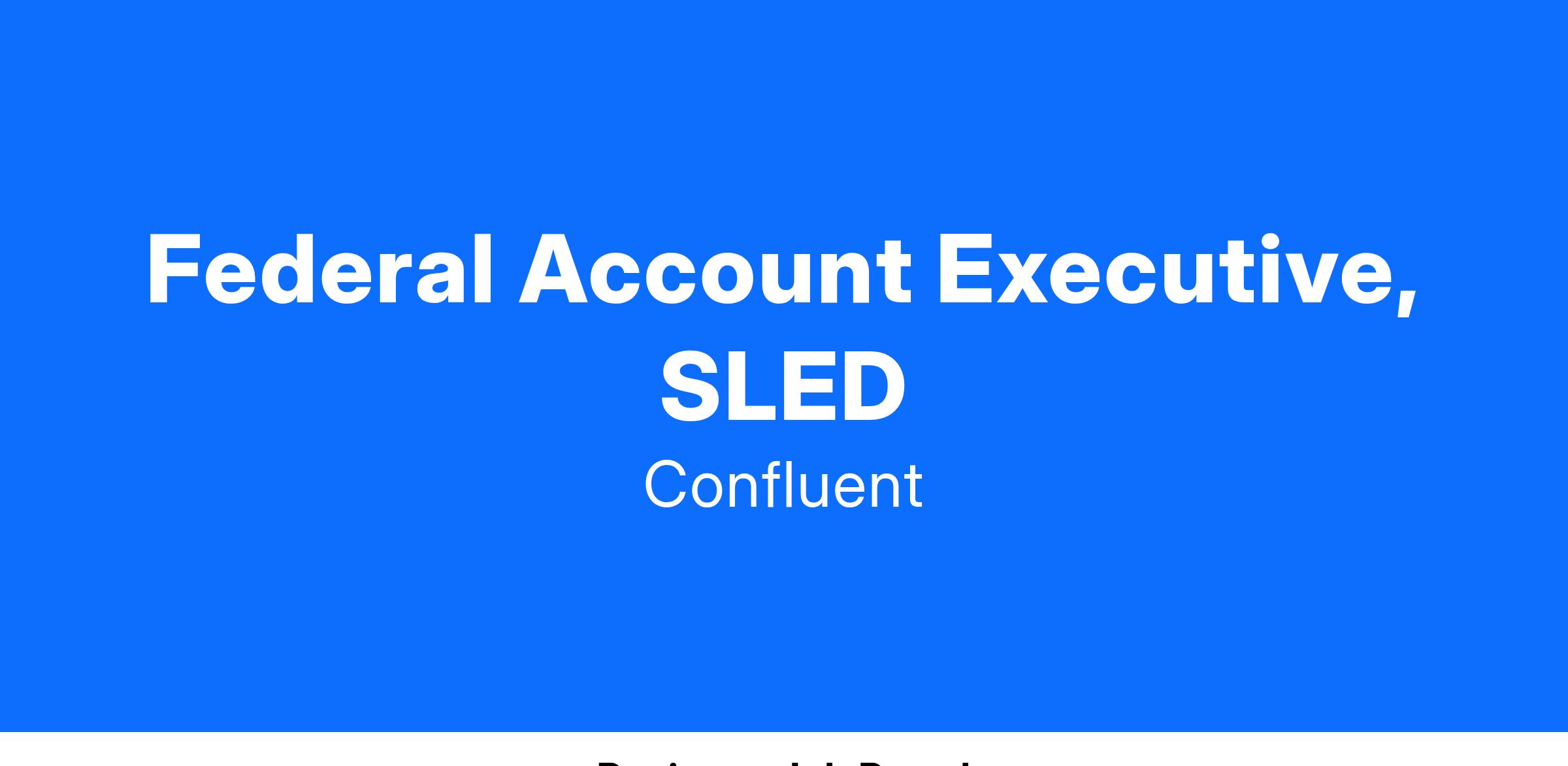 The Federal Account Executive will be key in driving Confluent's sales activities in the Public Sector. This role includes developing and executing the go-to-market strategy within the SLED and Civilian Agency space. The ideal candidate must have experience selling complex Databases, Messaging, Big Data, Open Source, and/or Cloud solutions.Β Β