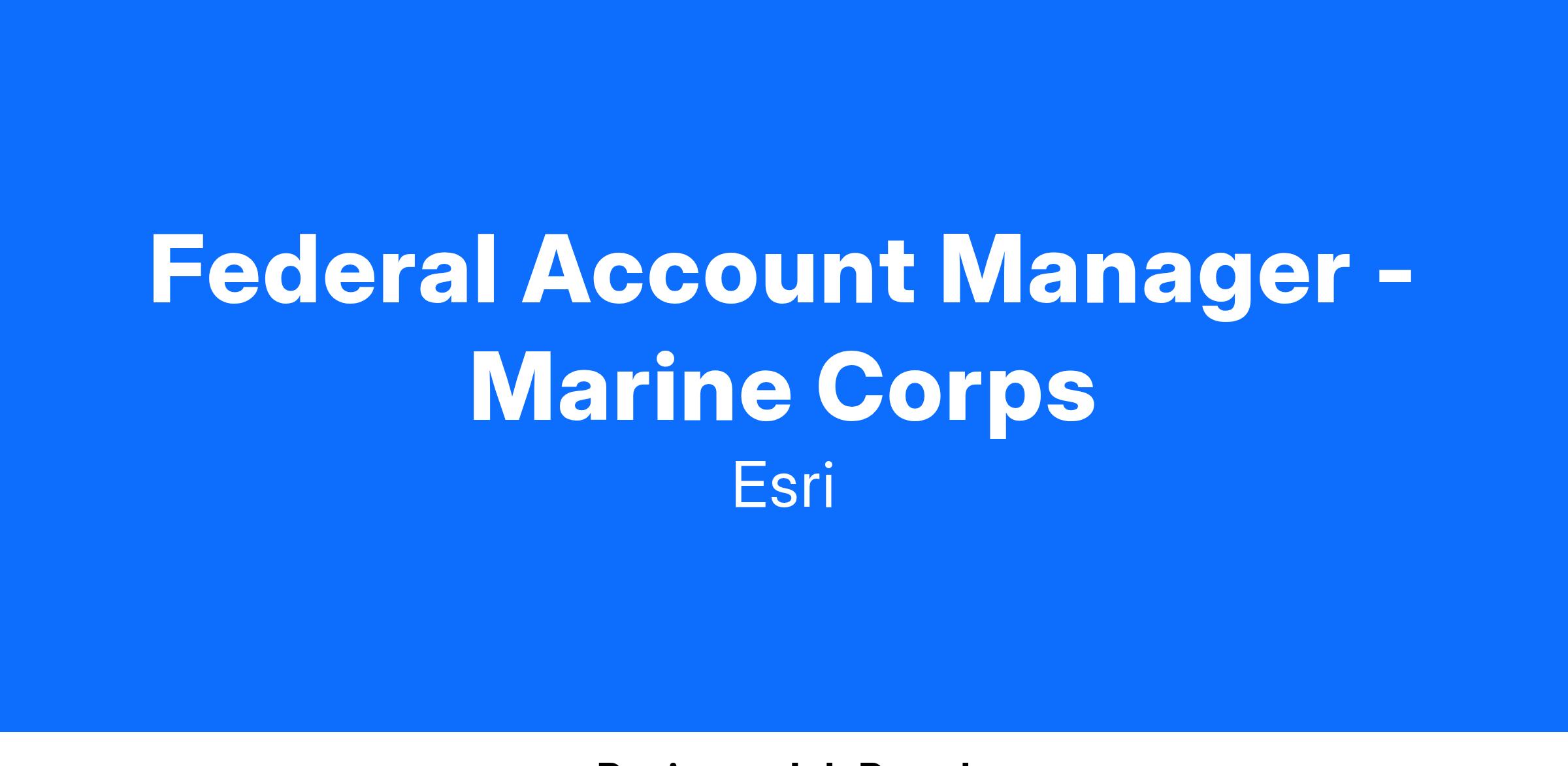 We invite you to bring your experience and passion for Defense and GIS coupled with an understanding of applying geospatial technology to become an integral part of Esri’s national government account team. We’re looking for an individual who is customer oriented and a collaborative team player who enjoys identifying and implementing strategies that will radically improve the challenges organizations face. You’ll work closely with a team that helps our new and existing United States Marine Corps (USMC) customers optimize and expand adoption of Esri technology, identify new areas of growth, and deliver expertise that helps deliver on their mission.