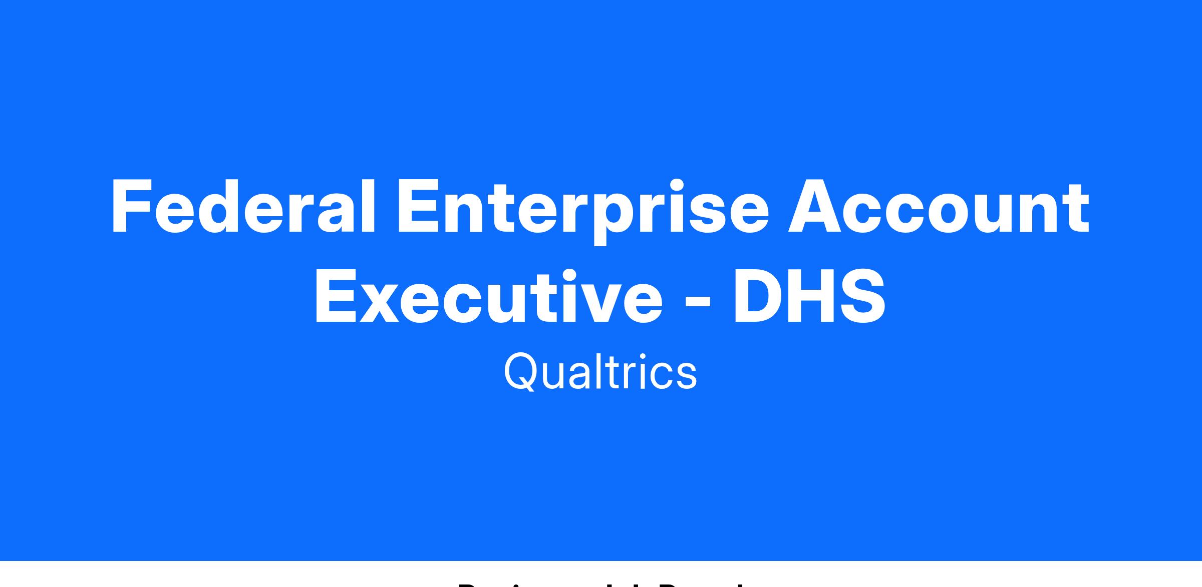 The Qualtrics Federal sales team is a group of highly driven individuals dedicated to closing experience gaps across U.S. Federal organizations. The Department of Homeland Security (DHS) Federal Enterprise Account Executive is expected to lead all sales efforts within the assigned territory, including prospect identification, lead generation, solution calls, advancing the sales cycle, proposal development, contract negotiation, forecasting and deal closure. The focus is on driving incremental revenue for Federal product lines and buyer personas. As a Federal Enterprise Account Executive, your overarching objective is to drive company revenue growth through net new customer acquisition and strategic expansion across the current customer base within DHS.