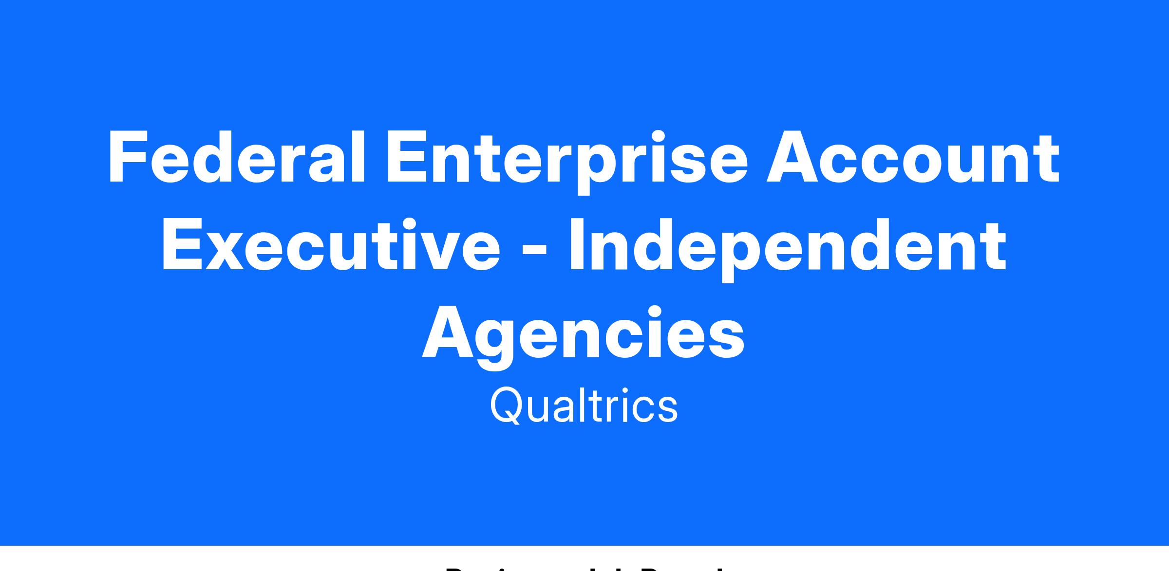 Qualtrics’ Federal sales team is a group of highly driven individuals dedicated to closing experience gaps across Federal organizations in North America. The Federal Senior Account Executive is expected to lead all sales efforts within his or her assigned territory, including prospect identification, lead generation, sales calls, handling the sales cycle, proposal and contract negotiation through deal closure, with a specific focus on driving incremental revenue for our Federal product lines and buyer personas. As a Federal Senior Account Executive, your overarching objective is to drive company revenue growth through net new customer acquisition, as well as expansion in our current customer base for the U.S. Department of Education, U.S. Social Security Administration, U.S. Independent Federal Agencies, etc.