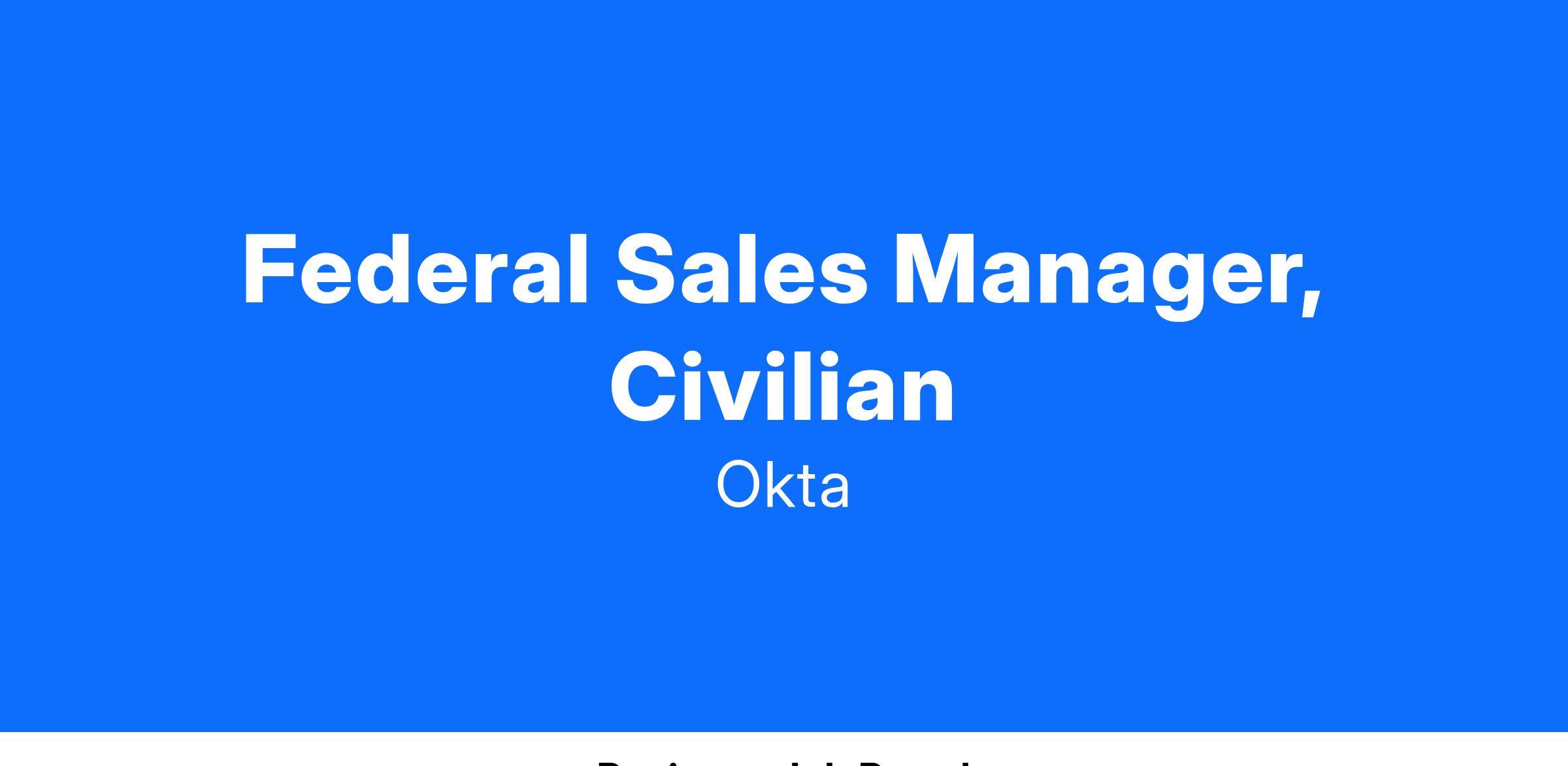 We are seeking a passionate, results oriented, sales professional to drive revenue growth calling on Federal accounts. Our Federal Sales Managers are individual contributors who play a vital role in driving a significant share of revenue for Okta. We provide our reps with an environment in which they can make valuable contributions from day one while also building opportunities for learning and growth.