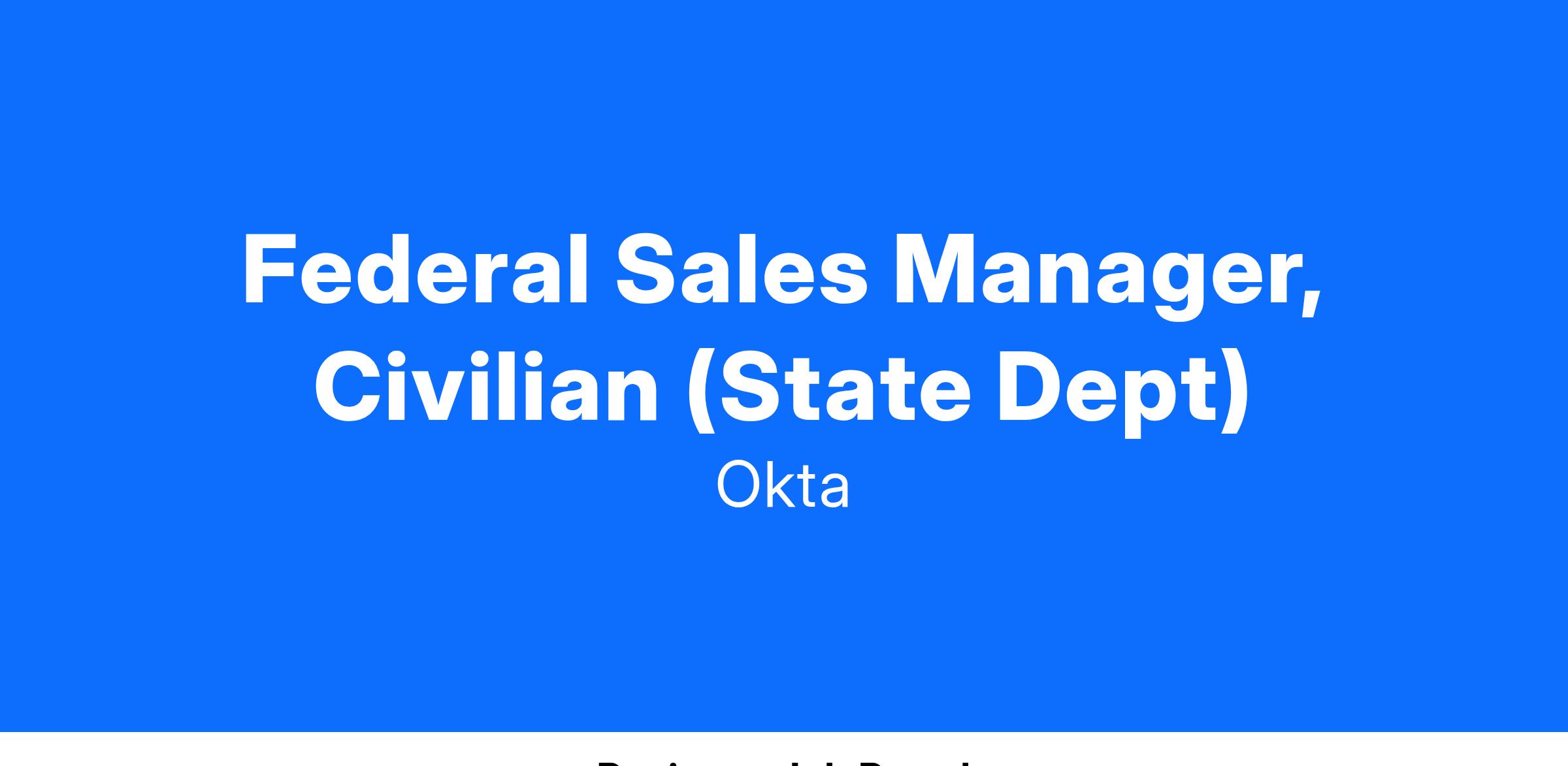 We are seeking a passionate, results oriented, sales professional to drive revenue growth calling on Federal accounts. Our Federal Sales Manager's are individual contributors who play a vital role in driving a significant share of revenue for Okta. We provide our reps with an environment in which they can make valuable contributions from day one while also building opportunities for learning and growth.