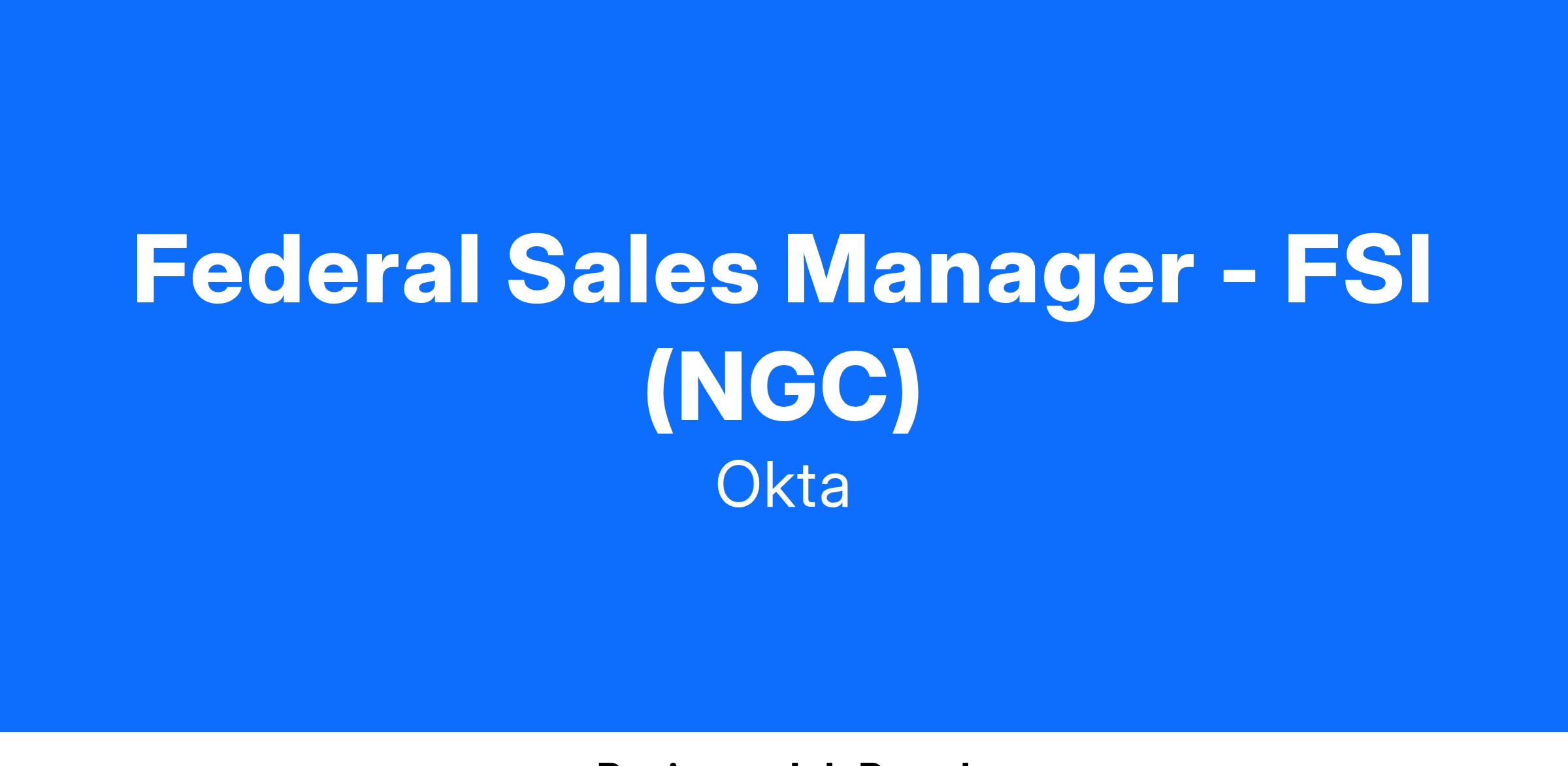 We are seeking a passionate, results oriented, sales professional to drive revenue growth calling on Federal accounts.  Our Federal Sales Managers are individual contributors who play a vital role in driving a significant share of revenue for Okta. We provide our reps with an environment in which they can make valuable contributions from day one while also building opportunities for learning and growth.