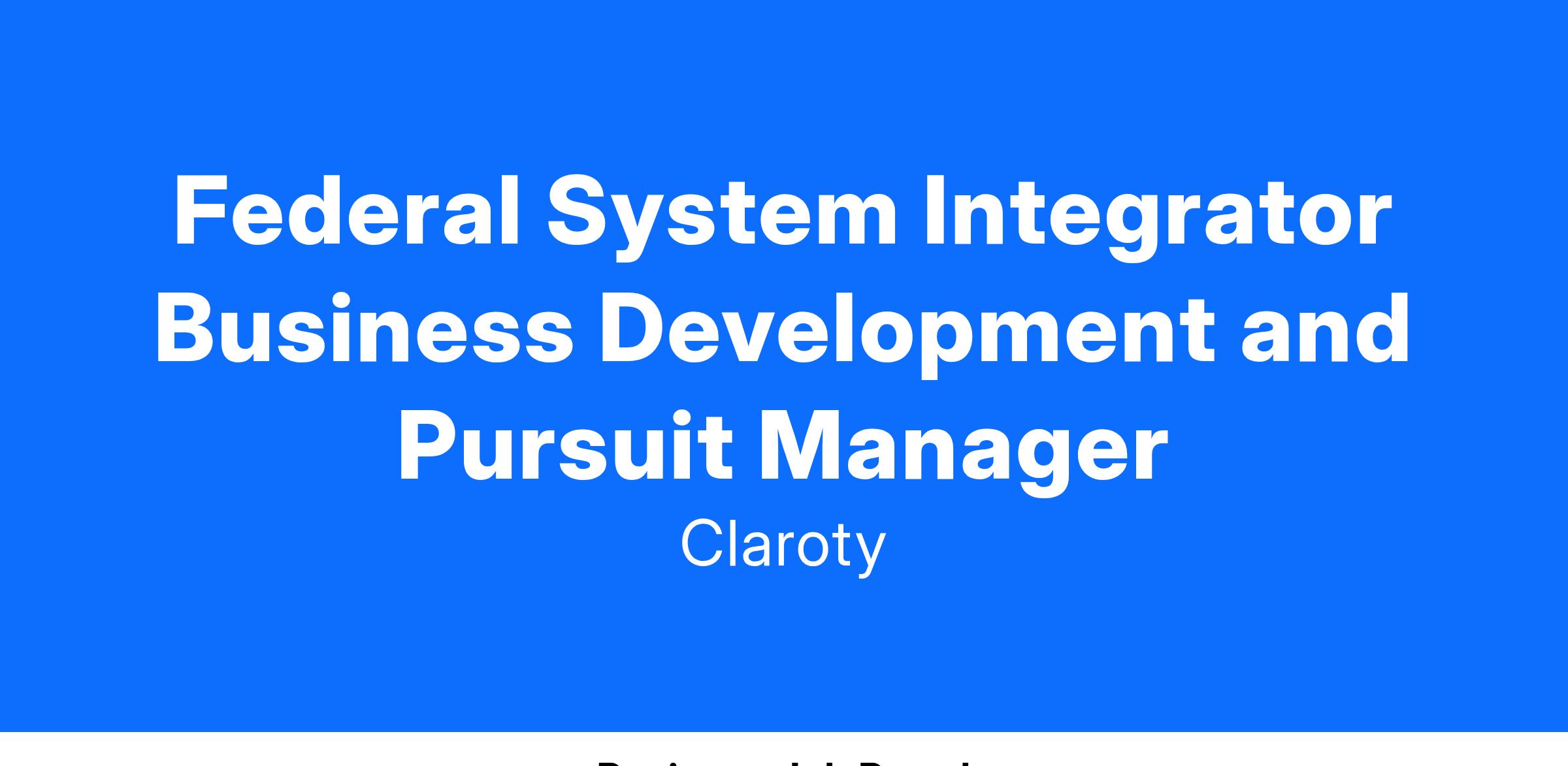As a Federal System Integrator Business Development and Pursuit Manager, Your impact will be: