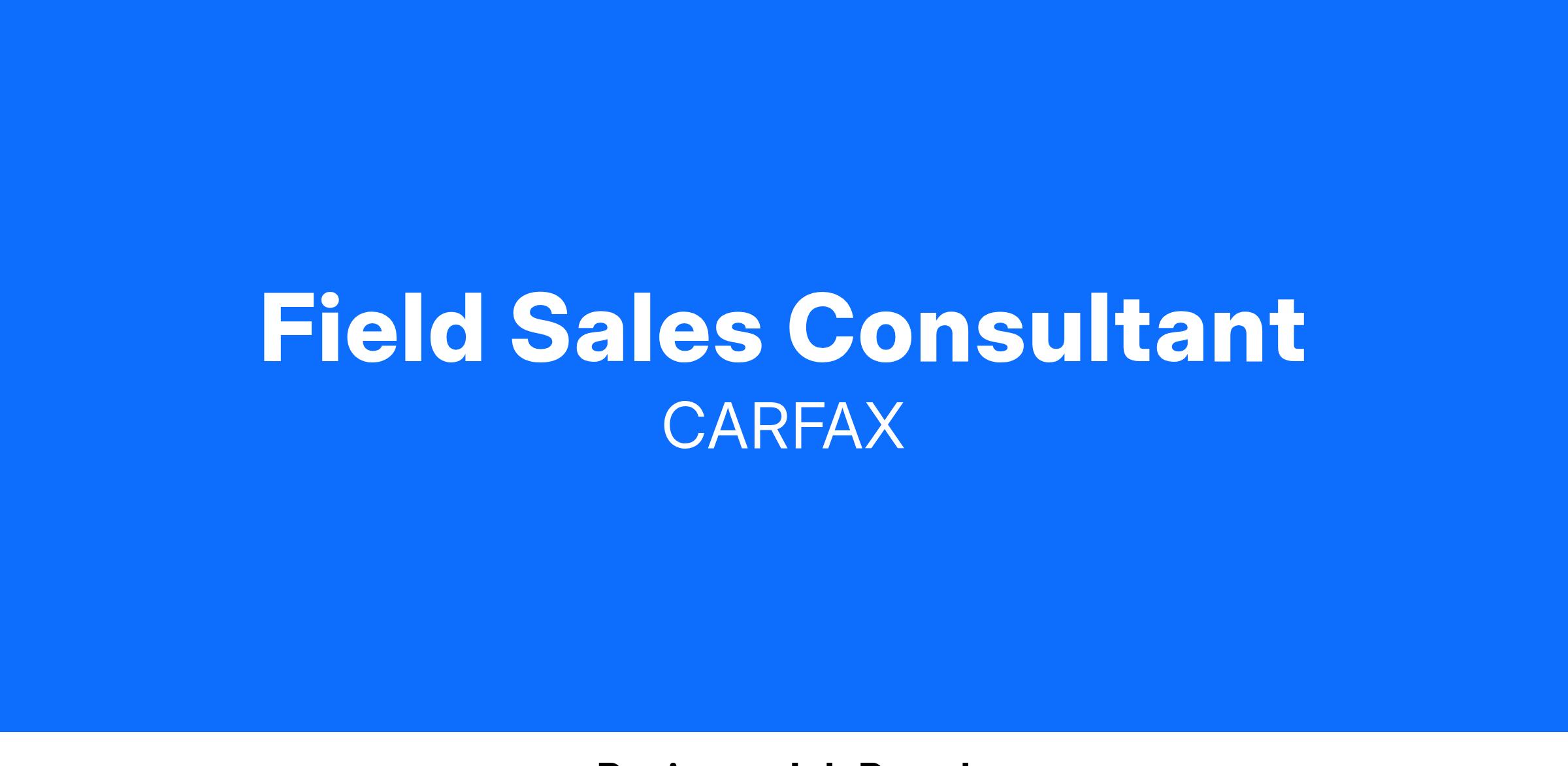 The Field Sales Consultant is responsible for presenting the value of the CARFAX suite of products, creating a sense of urgency with decision makers and closing deals.