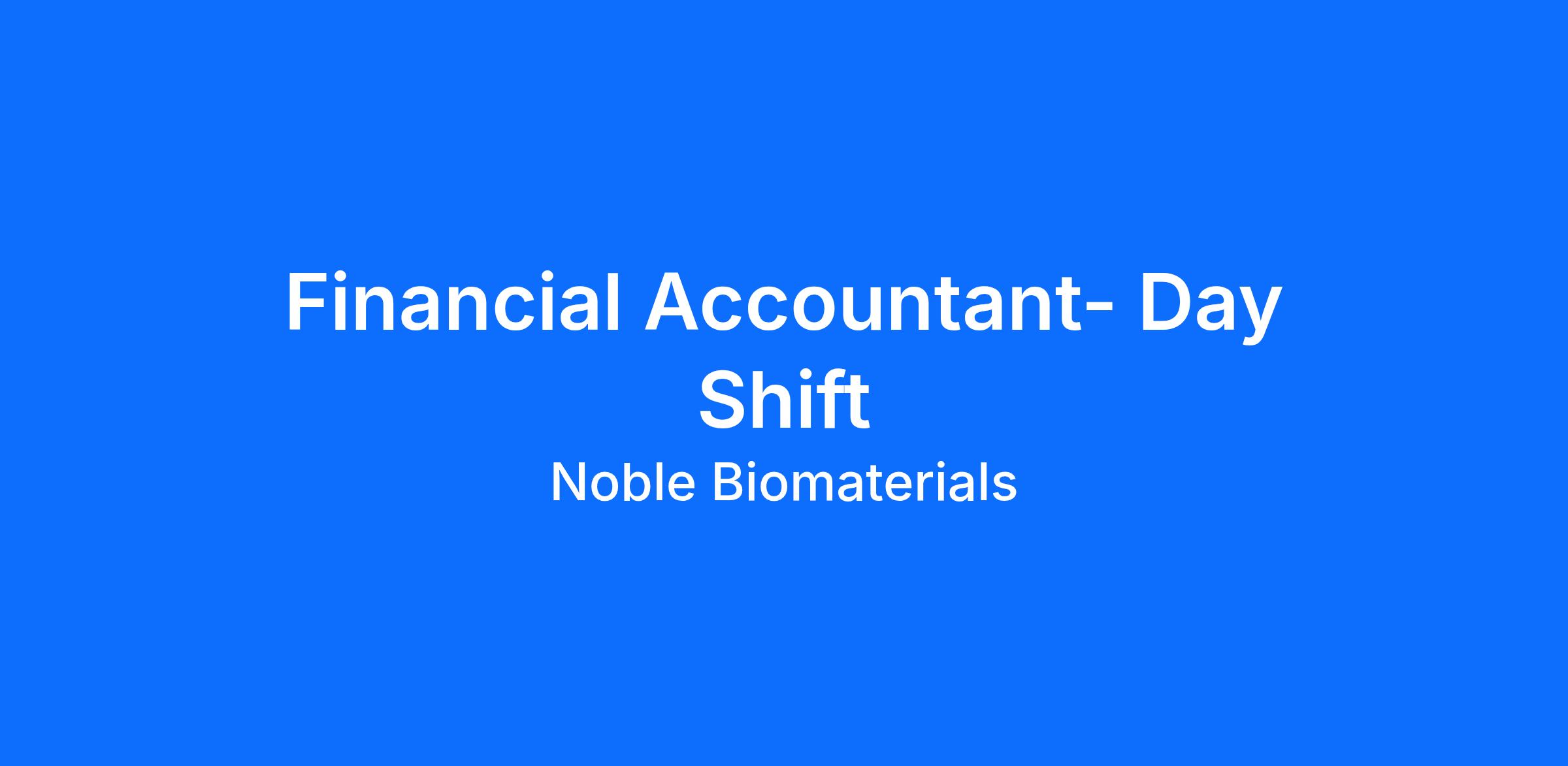 Noble Biomaterials, Inc is currently seeking a Financial Accountant. This role is responsible for analyzing financial data and preparing reports to track the company’s assets, liabilities, profit/loss, tax obligations, and other financial activities.
