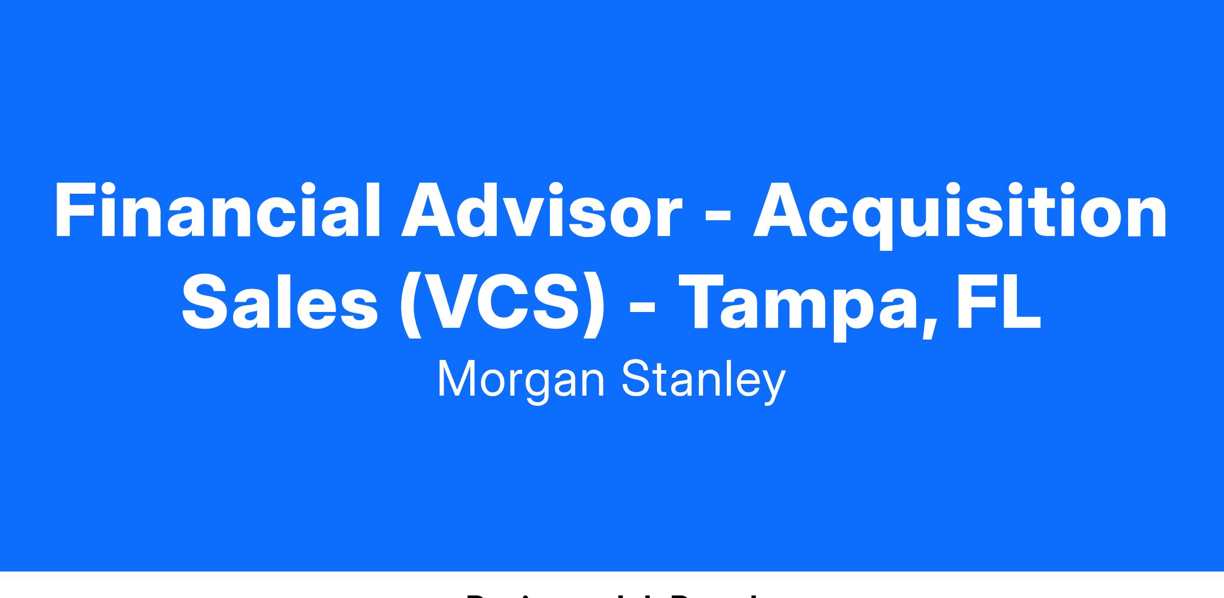 Virtual Advisor (MSVA) is Morgan Stanley’s wealth management offering for mass affluent clients with a specific focus in the coveted Next-Gen retail space. Virtual Advisor operates out of US locations and has Financial Advisors and Client Relationship Associates, all of whom work with our clients over the phone and via digital touchpoints. Our Financial Advisors work with clients to develop goal-based solutions to support their overall wealth goals. The Acquisition Advisor is MSVA’s premier destination advice role!