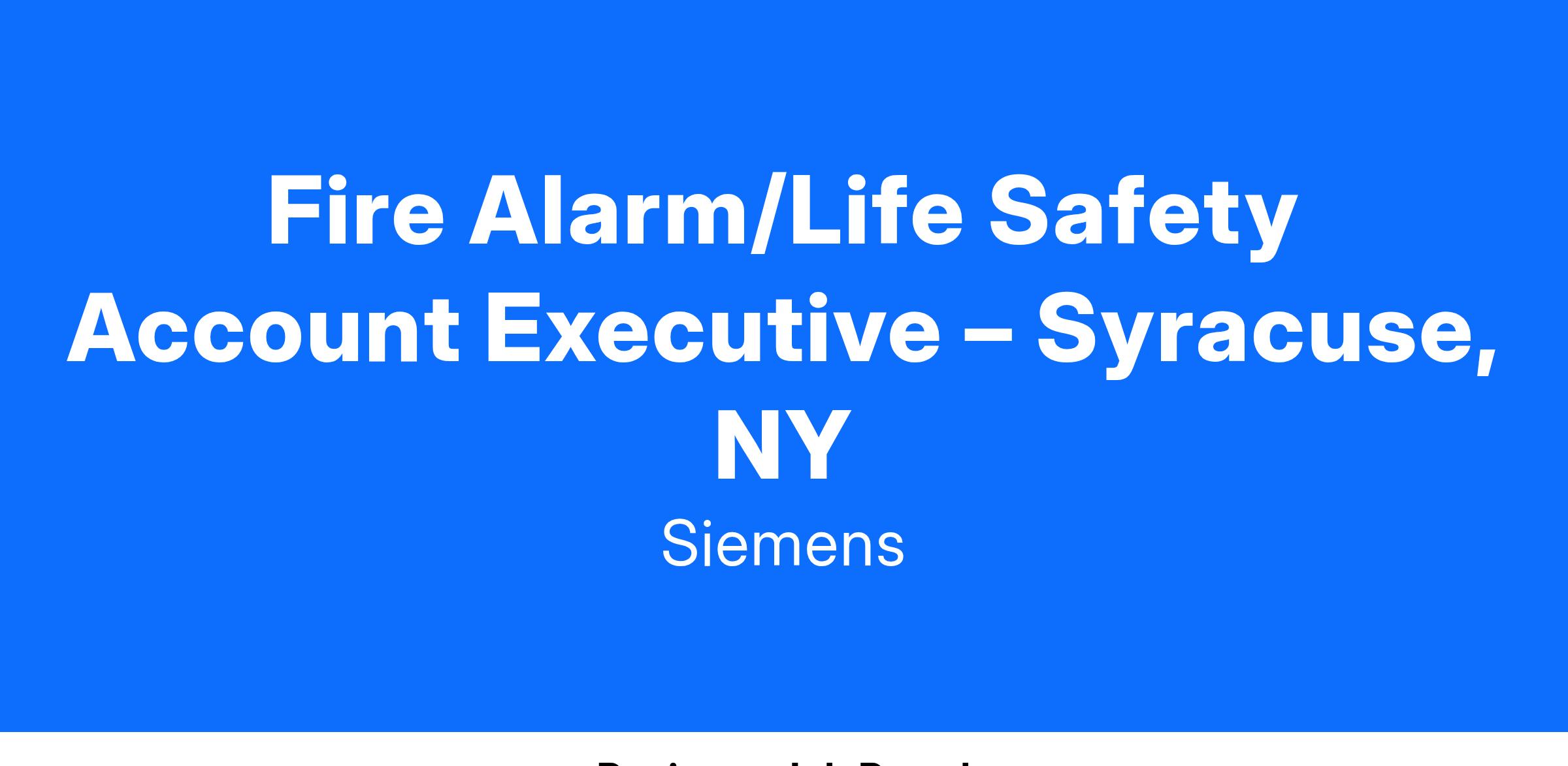 The Service Sales Executive is committed to supporting our Service Agreements business within our commercial Smart Buildings Total Fire Alarm & Life Safety Service team. Our Sales team supports our Operations team whose focus is to perform fire/life safety service and maintenance in large commercial buildings such as hospitals, universities, and industrial facilities. Why is this so important? Our Sales Executives are ambassadors of quality Siemens technology, products and services, and your expertise and regular interaction with the customers will help them optimize and facilitate a safe, emergency-ready workplace.