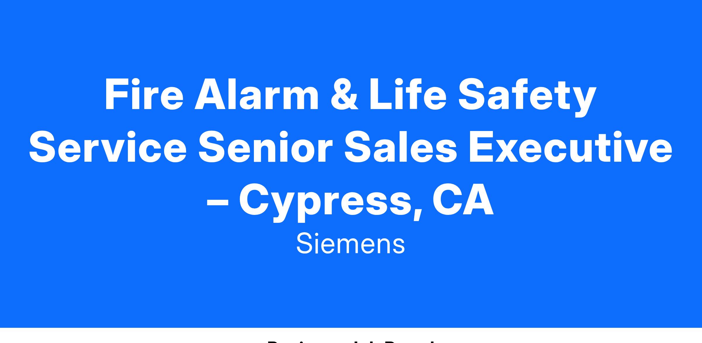 The Service Senior Sales Executive is committed to supporting our Service (Service Agreements) business within our commercial Smart Buildings Total Fire Alarm & Life Safety Service team. In this role, you will achieve booking and profit goals by developing and implementing plans to grow, develop, and manage contractor, consultant, authority having jurisdiction, developer, and end-user relationships; capitalize on sales opportunities within the territory; and effectively execute sophisticated deals independently within our established guidelines. Why is this so important? Our Sales Executives are ambassadors of quality Siemens technology, products and services, and your expertise and regular interaction with the customers will help them optimize and facilitate a safe, emergency-ready workplace.
