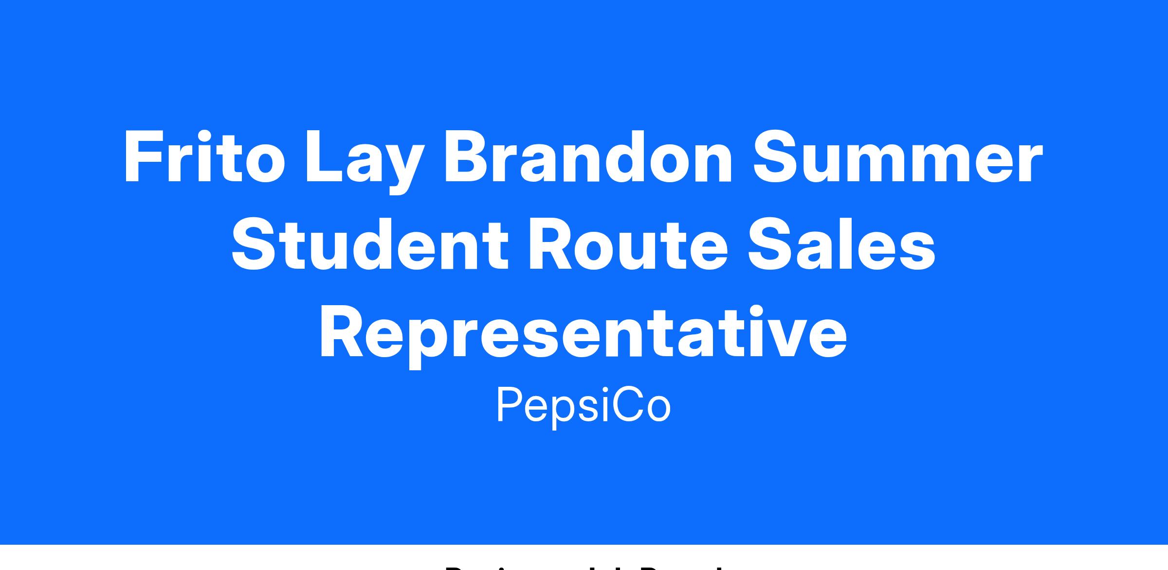 Overview Are you hungry for an exciting and challenging opportunity in a fast-paced, diverse organization? If so, you have a future at Frito Lay. The Summer Route Sales Representative role is a great opportunity to start building your career at Frito Lay, leading to the opportunity to join our Co-op or New Grad programs in future terms. What you can expect from us: Opportunity to gain exposure to PepsiCo’s Co-op or New Grad programs A dynamic and inclusive culture that promotes you to bring your whole self to work A chance to win our Top Summer RSR Award with a $1500 bonus Ability to grow your earnings through performance Compensation: $12,000-$15,000 per summer Responsibilities You will develop and sustain a growing snack foods business and leverage your skills by selling and delivering our products to your assigned group of retail customers at grocery stores, gas stations, and convenience stores. Your responsibilities will include: Merchandising: Merchandising store shelving with Frito-Lay Products, handling cardboard carton returns, rotating inventory to ensure products remain fresh for customers and cleaning shelving and racks. Driving & Delivering: Operating a route sales truck including loading, unloading, and delivering product as you travel between your assigned group of retail stores OR operating your personal vehicle along an established route. Selling & Ordering: Executing national and local promotions, displays, and racks, ordering sufficient product inventory for customer volume demands, and ensuring frequent communication with store managers. Hours: Must be available as early as 5am Qualifications Available to work full time from May to September Valid full G or class 5 driver’s license and a clean driving record Preference for those enrolled in a college/university program Able to work early mornings and weekends (starting as early as 5 am!) Your own vehicle, or daily access to a vehicle Physically active/strong - able to lift approx. 50 pounds and be on your feet all day Strong independent worker who can stay motivated with minimal supervision Outstanding organizational skills (can handle multiple priorities, problem solve, and meet targets) Why work at PepsiCo At Frito Lay Canada, we are the saviours of the smiles and heroes of the hangry. You’re invited to be a part of a global team of innovators who make, move, and sell these products—which are enjoyed by more than 1 billion people a day. A career at Frito Lay Canada means working in a culture where everyone’s welcome. It takes a lot of muscle power and pride to create products that deliver smiles. This is a place where you stand out when you join in. Become a Frito Lay Canada team member. *Please note: PepsiCo does not charge or solicit fees to apply for employment. Any such requests are not legitimate and should be reported.