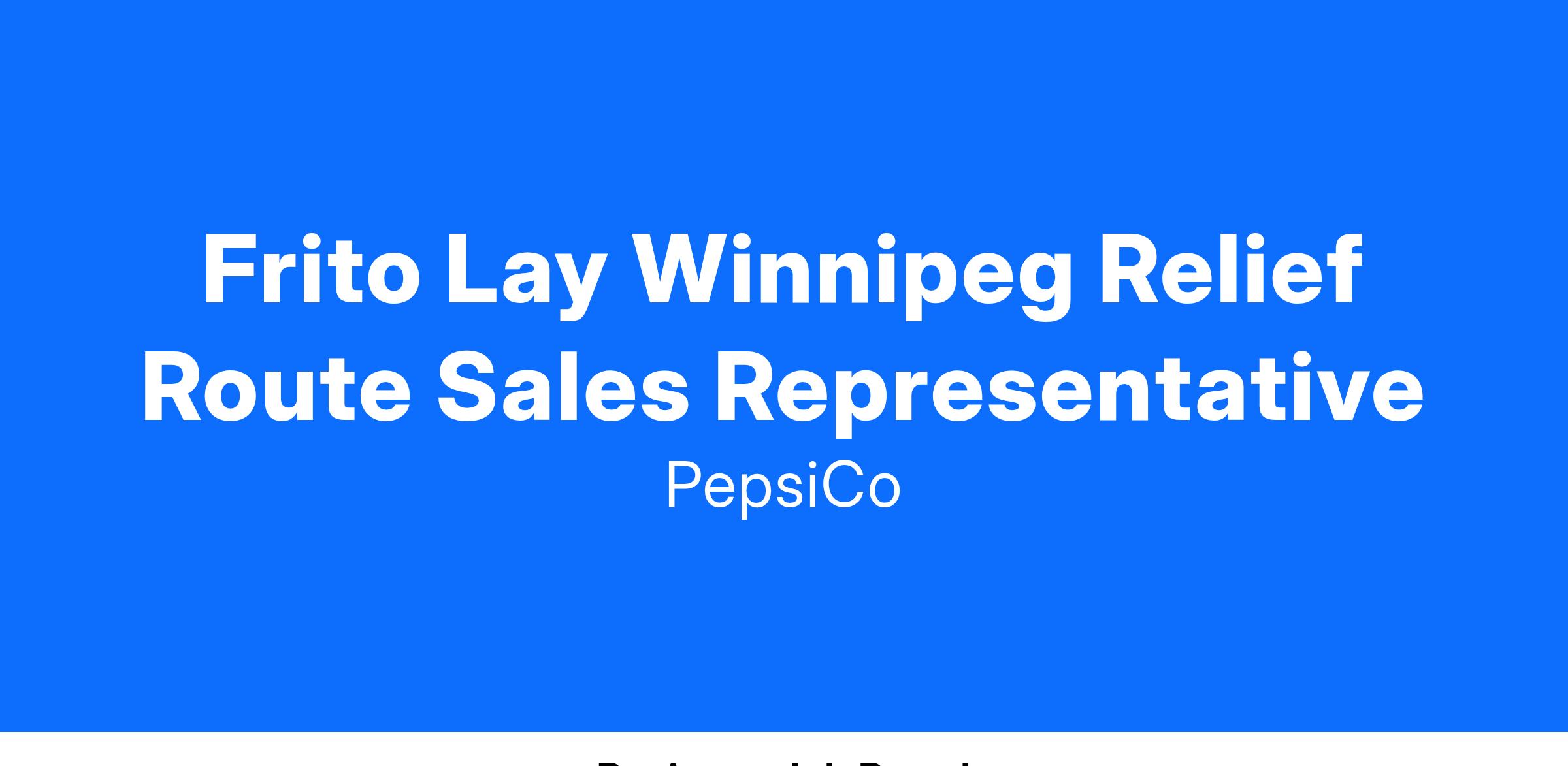 Valid full G or class 5 driver’s license A car or reliable, consistent access to a car and a clear/clean driving record Scheduling flexibility: work schedule can vary (weekends/holidays included) Previous sales experience with a consumer-packaged goods or retail organization preferred Outstanding organizational skills (able to handle multiple priorities, problem solve, meet targets Why work at PepsiCo At Frito Lay Canada, we are the saviours of the smiles and heroes of the hangry. You’re invited to be a part of a global team of innovators who make, move, and sell these products—which are enjoyed by more than 1 billion people a day. A career at Frito Lay Canada means working in a culture where everyone’s welcome. It takes a lot of muscle power and pride to create products that deliver smiles. This is a place where you stand out when you join in. Become a Frito Lay Canada team member. *Please note: PepsiCo does not charge or solicit fees to apply for employment. Any such requests are not legitimate and should be reported.
