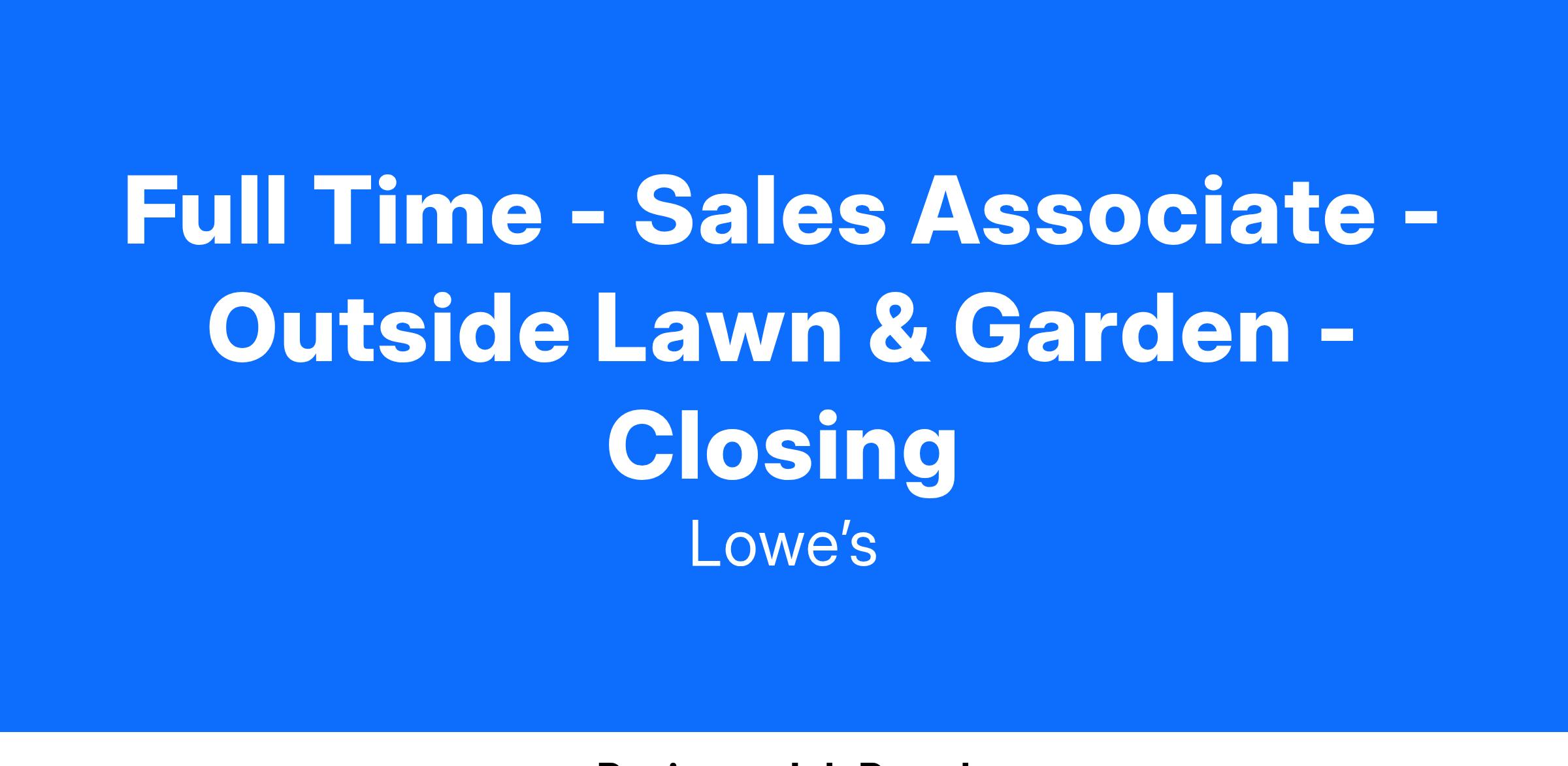 As a Customer Service Associate, you combine top-notch customer service skills with genuine care for people to help customers feel comfortable while shopping at Lowe's. This is an excellent role for those who want to engage with customers and help them solve their home improvement challenges.