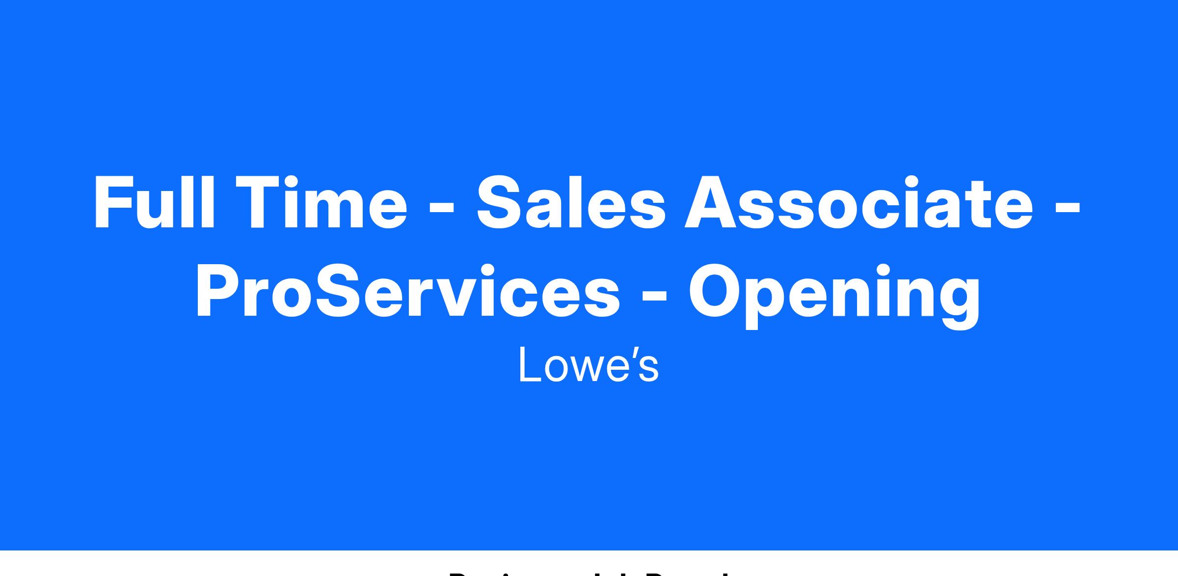 Full Time - Sales Associate - ProServices - Opening