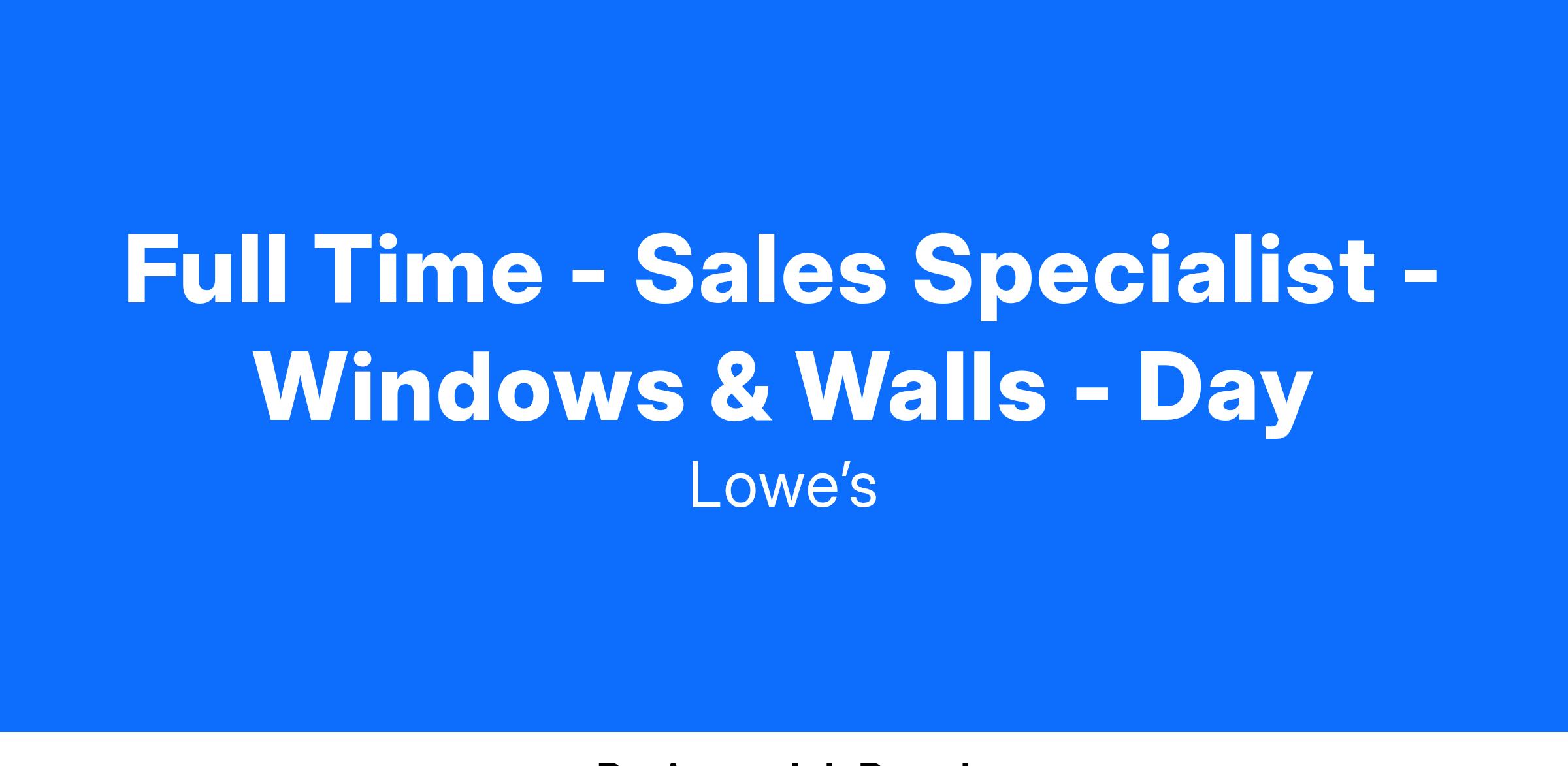 • 1 year experience in customer-facing sales or 6 months of Lowe’s retail experience (Or 3 years of external experience in customer-facing sales or 18 months of Lowe’s retail experience if education requirement is not met)