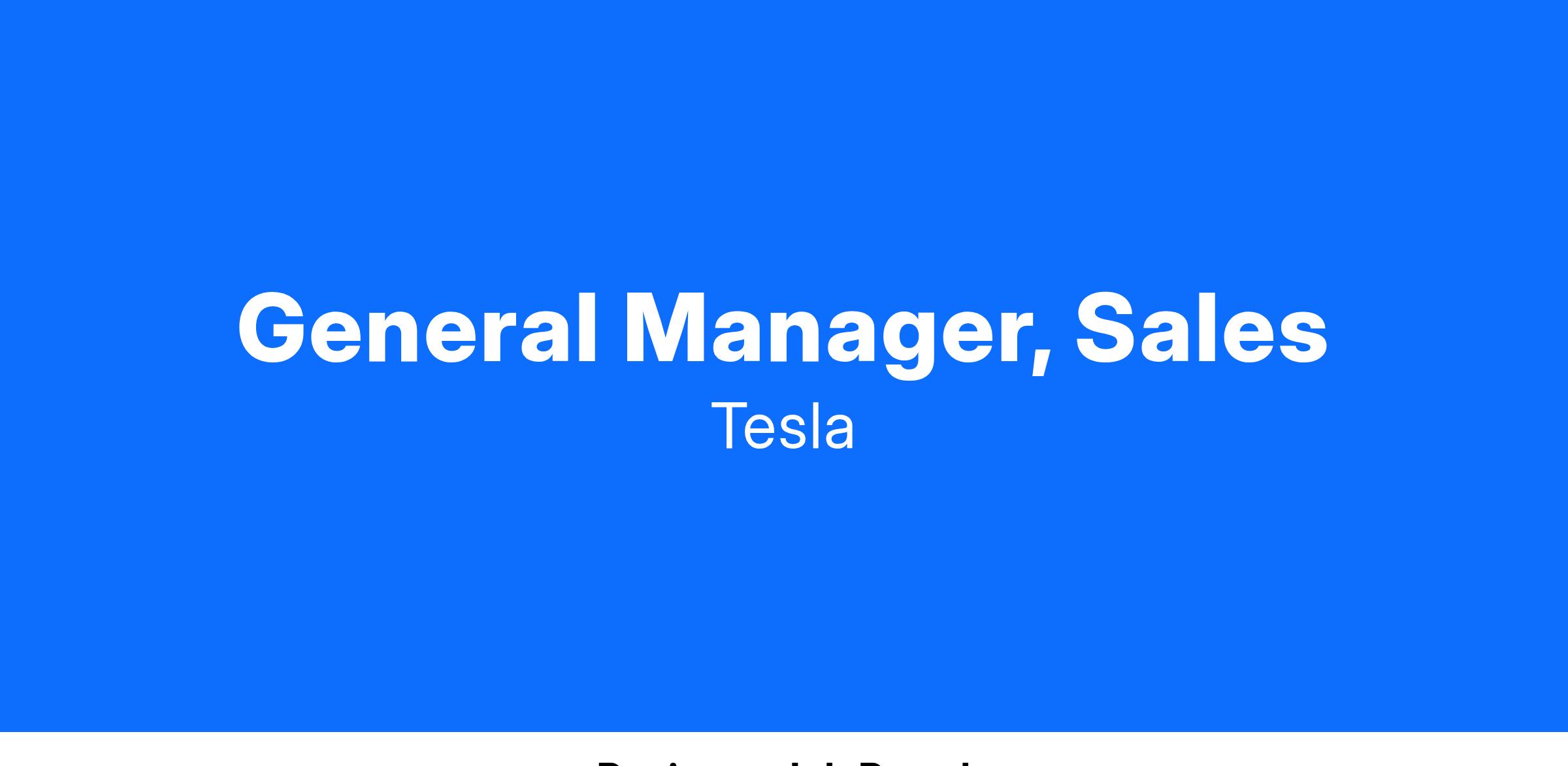 As Tesla expands, we are seeking exceptional leaders to drive our growth by forming exceptional teams and refining processes that enhance the entire customer experience. As a General Manager, your primary responsibility is to guarantee the site's success by overseeing all sales and service operations. In this pivotal role, you will lead cross-functional managers and institute streamlined, customer-focused processes to propel Tesla's mission of accelerating the global transition to sustainable energy. We're looking for a candidate who can make a significant impact in this leadership position.