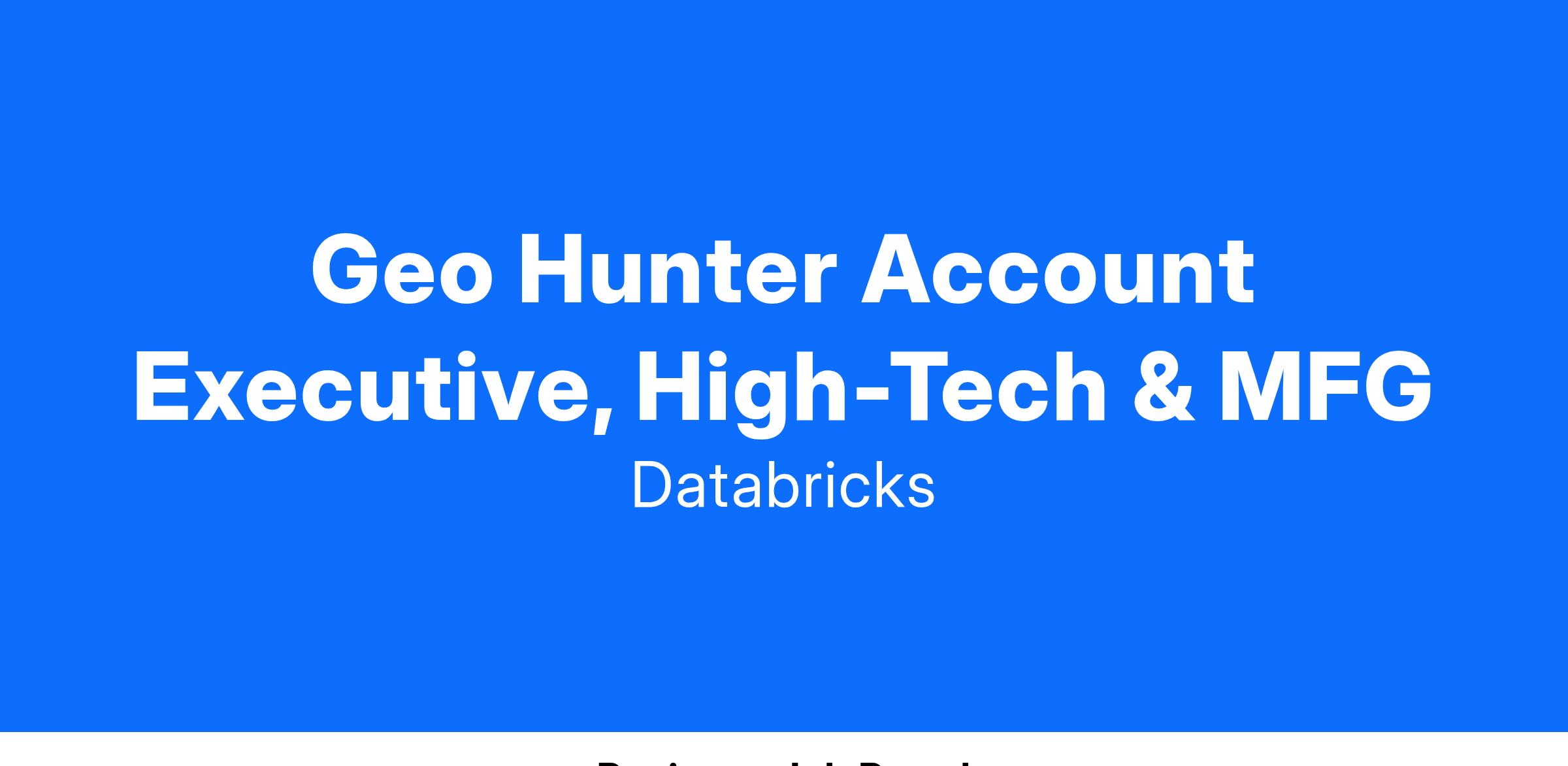 As a Geo Hunter Account Executive in Databricks' High-Tech & Manufacturing vertical, you are an experienced sales professional with demonstrated success breaking into new logos, aligning business value with technology, and driving consumption in customer accounts. You know how to sell innovation and change through customer vision expansion and can guide deals forward to compress decision cycles. You love understanding a product in depth and are passionate about communicating its value to Customers and System Integrators. Always looking for new opportunities, you will close new accounts while maintaining existing accounts. Along with the chance to close exciting deals and solve meaningful problems, we also offer accelerators above 100% quota attainment.