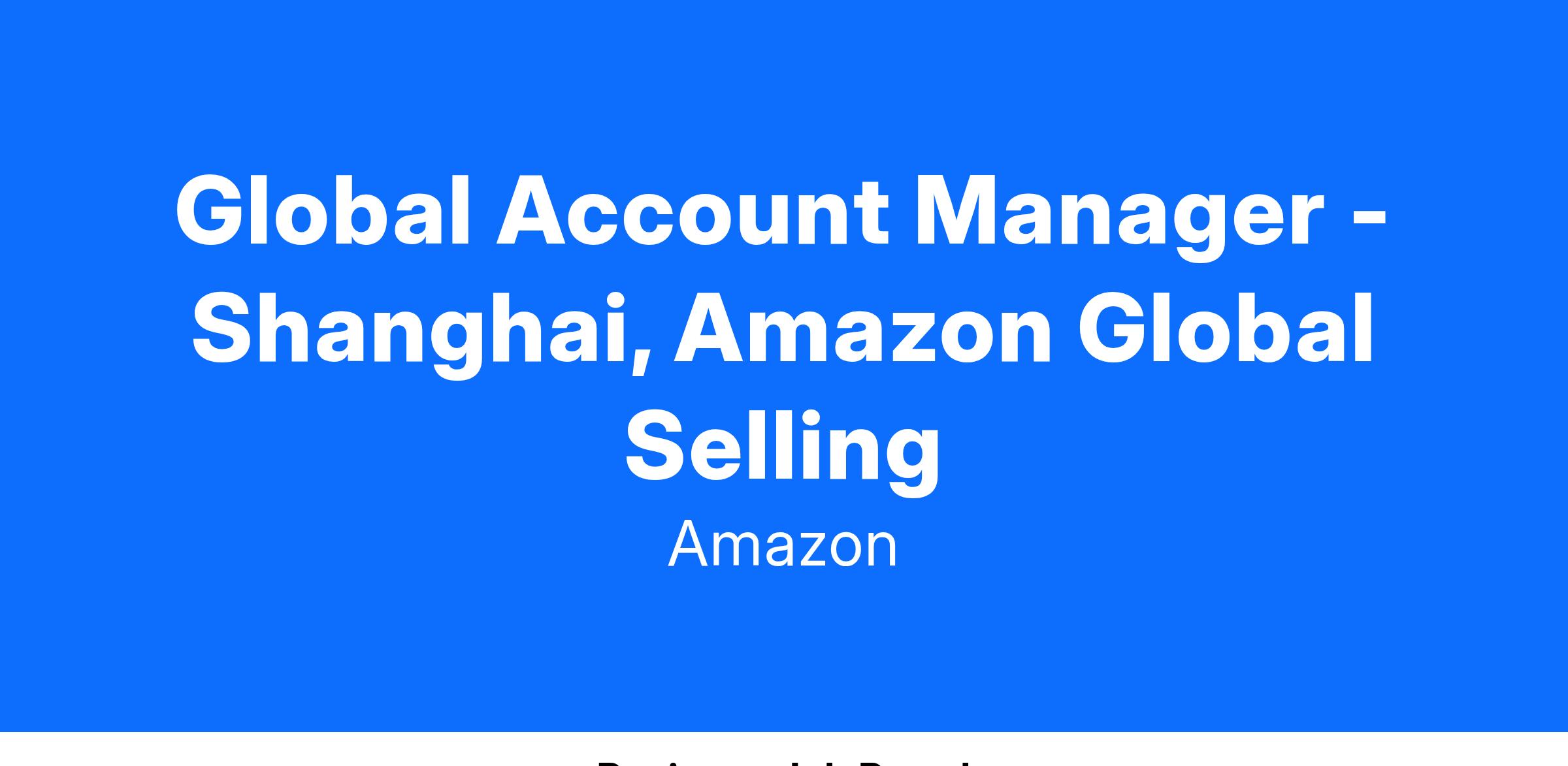 Amazon Global Selling has been helping individuals and businesses increase sales and reach new customers around the globe and is responsible for recruiting local businesses to sell on Amazon’s 19 overseas marketplaces, and supporting local Sellers’ success and growth on the Amazon. Our vision is to be the first choice for all types of Chinese business to go globally.