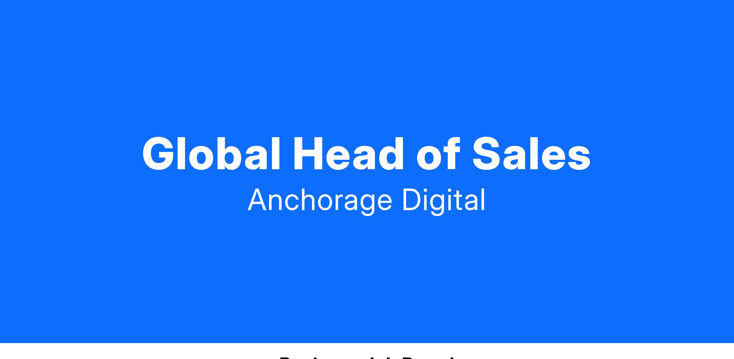 Anchorage is looking for a Head of Sales to lead our global revenue team and expand our reach as the leading institutional crypto platform. As a key member of the Anchorage senior management team, the Global Head of Sales will report to our Chief Operating Officer and collaborate across all departments on revenue strategy and operations.