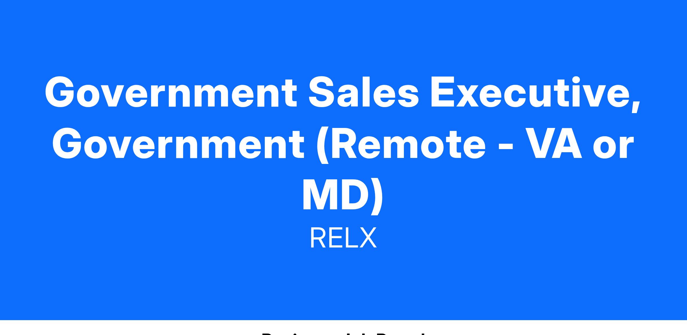 The Government Sales Executive serves as the primary new business leader for Civilian markets at the Federal level.