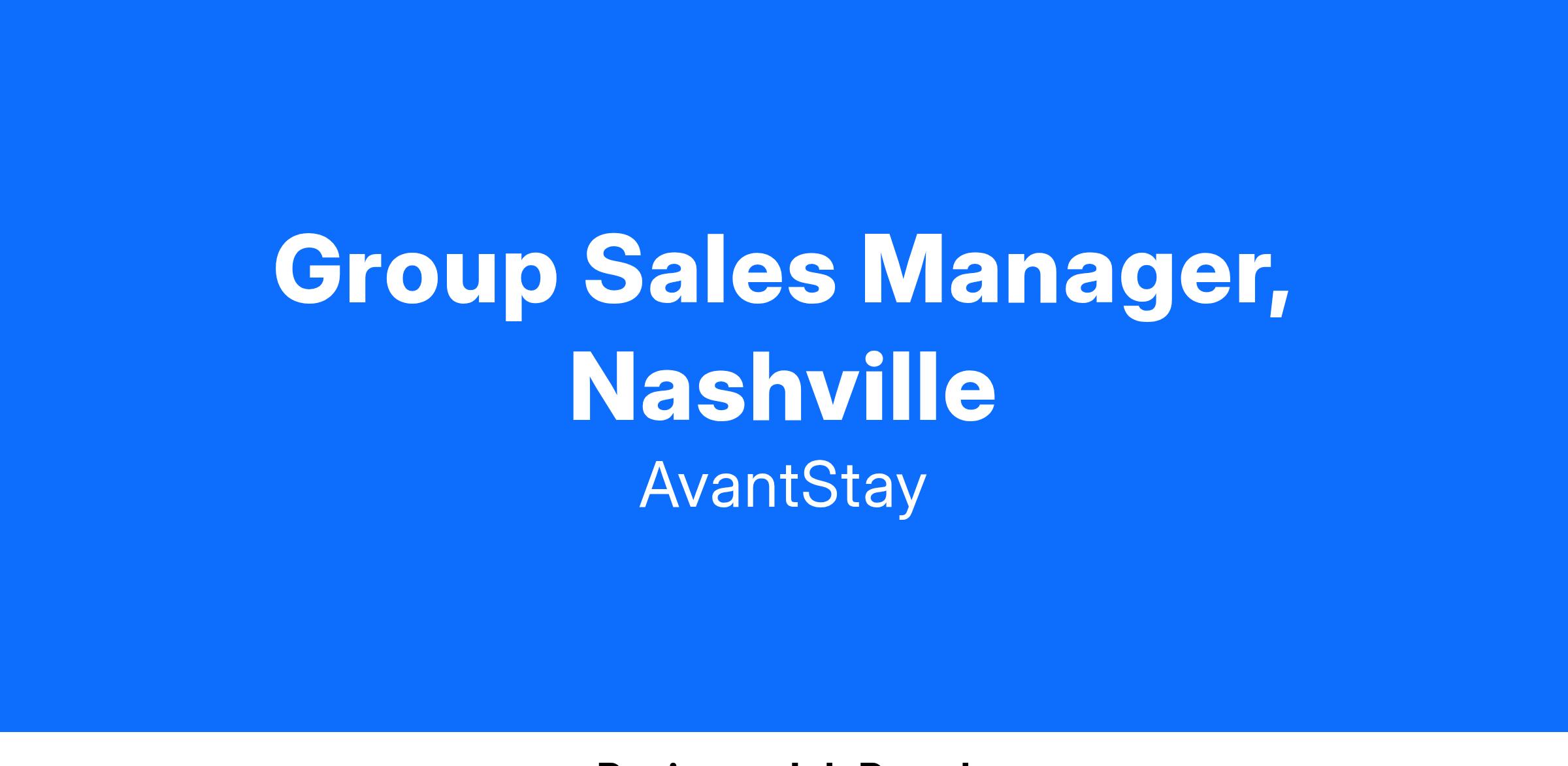 As the Group Sales Manager at AvantStay, you will be responsible for driving business growth in our expanding Nashville market, which includes single-family residences (SFRs), apartments, and hotel-style properties. Your primary focus will be on outbound outreach to facilitate group buyouts and bookings, developing partnerships with local Nashville agencies and companies, and working closely with guests to coordinate corporate events at our properties. We are looking for someone who can quickly build rapport with new people and not be afraid of navigating large organizations and finding the right allies within them. We want a self-starter who can bring commitment, initiative, and professionalism to our corporate event sales efforts.