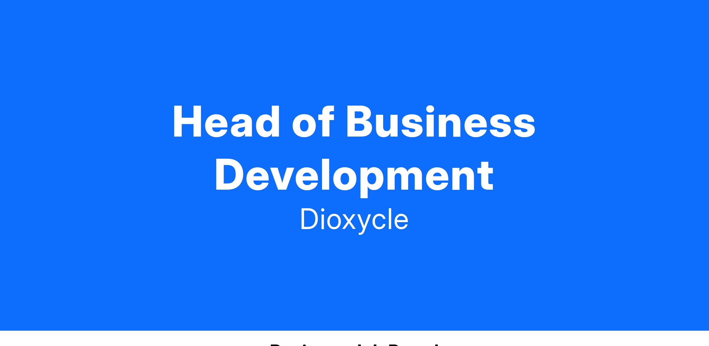 Dioxycle is seeking a highly talented and driven Head of Business Development to join our team at this pivotal phase of transition from in-house prototyping to commercial demonstration and roll-out. Partnering with the CEO and finance team, you will help refine the go-to-market strategy and lead commercial partnership development efforts. In this capacity, your responsibilities will center around: