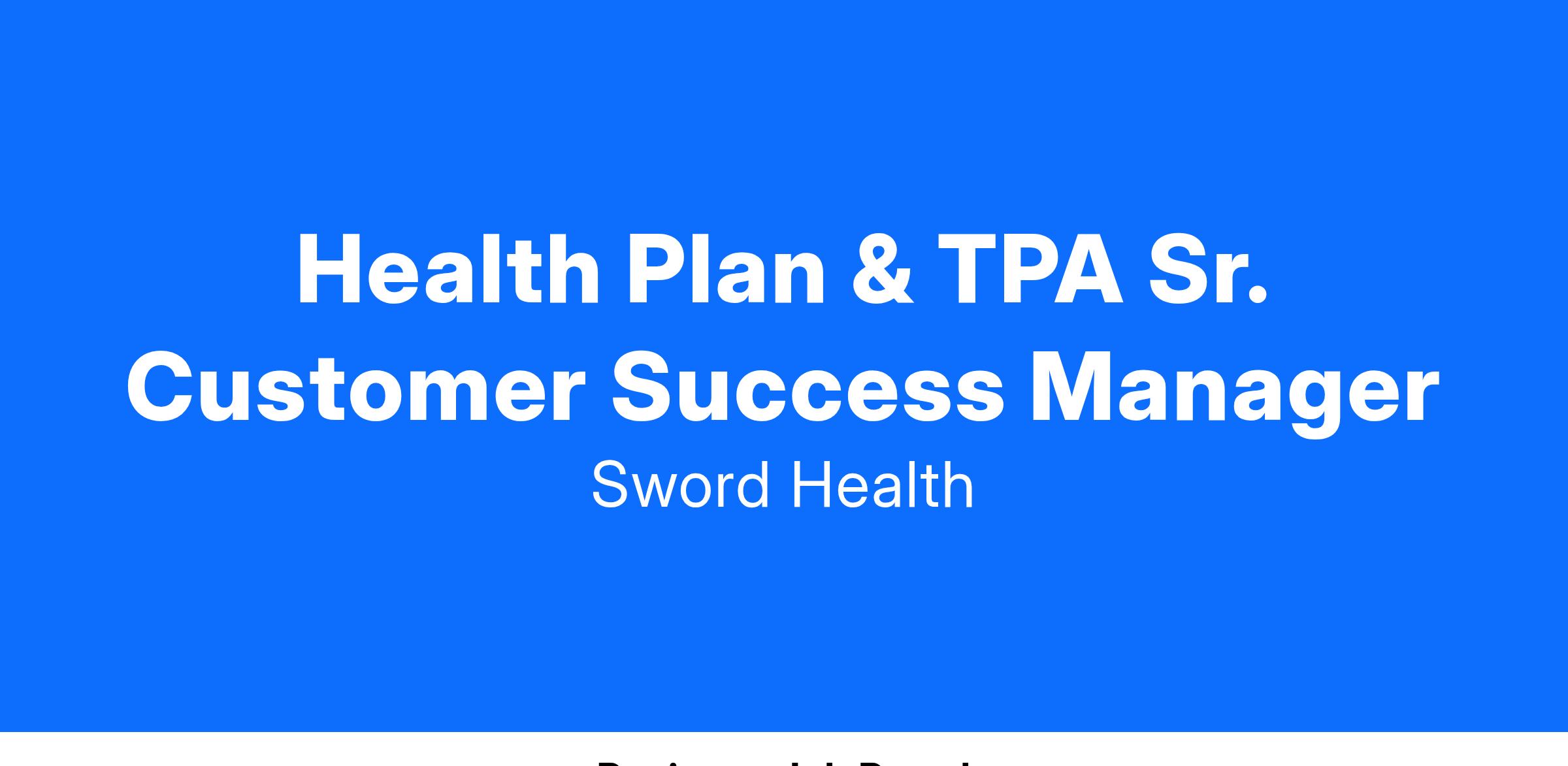 Sword Health is looking for an entrepreneurial individual to join our fast-paced and dynamic Heath Plan Customer Success team. You will work directly with customers and internal teams to onboard, manage, and grow Sword’s expanding portfolio of health plan customers. We are seeking Customer Success leaders who are comfortable managing a range of accounts, who love building relationships with our health plan customers, and who are laser-focused on delivering results. The ideal fit will be an organized, detail-oriented, resourceful, and naturally collaborative individual with a passion for delivering better health care to those who need it most.