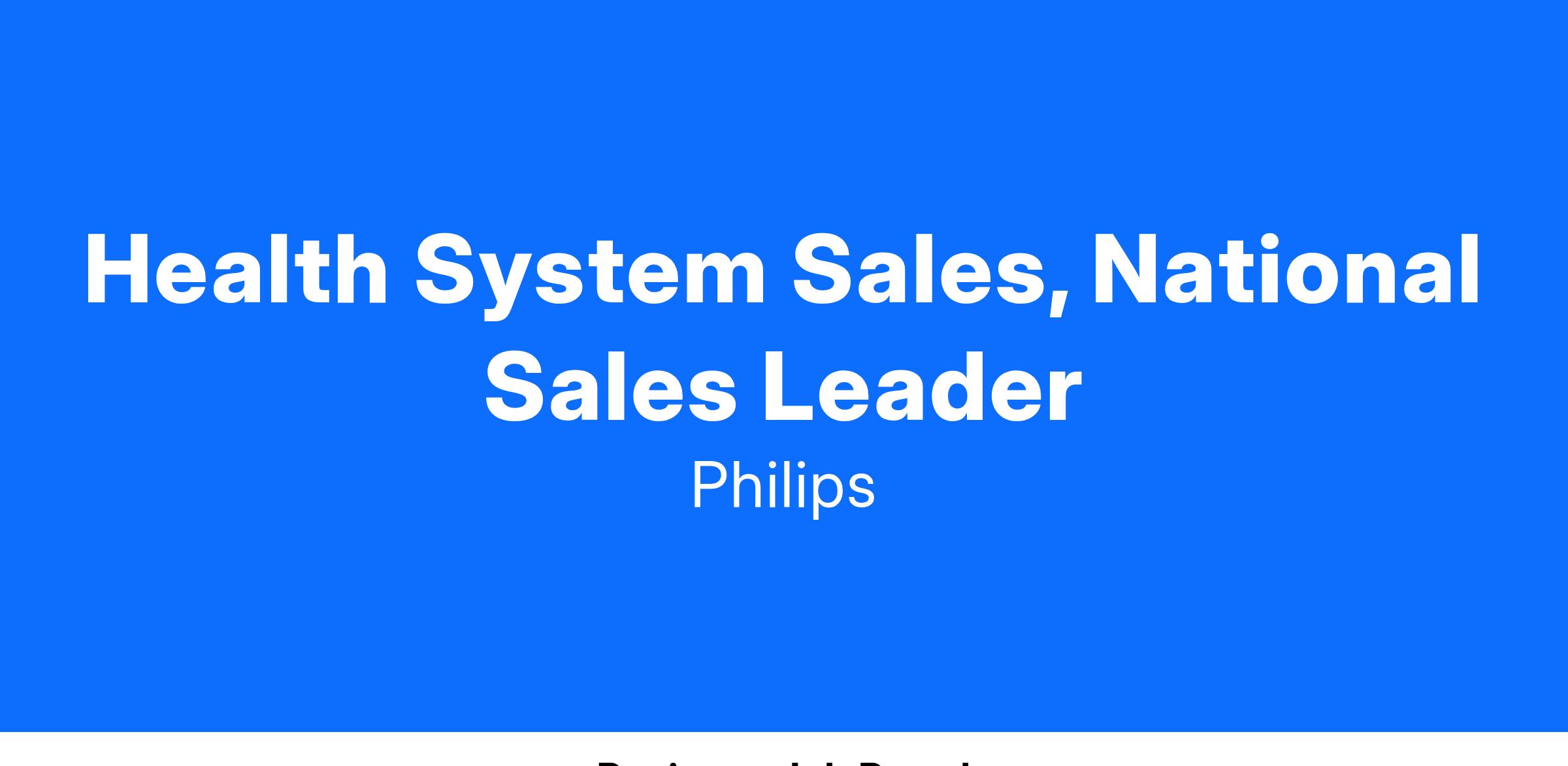 Health System Sales, National Sales Leader